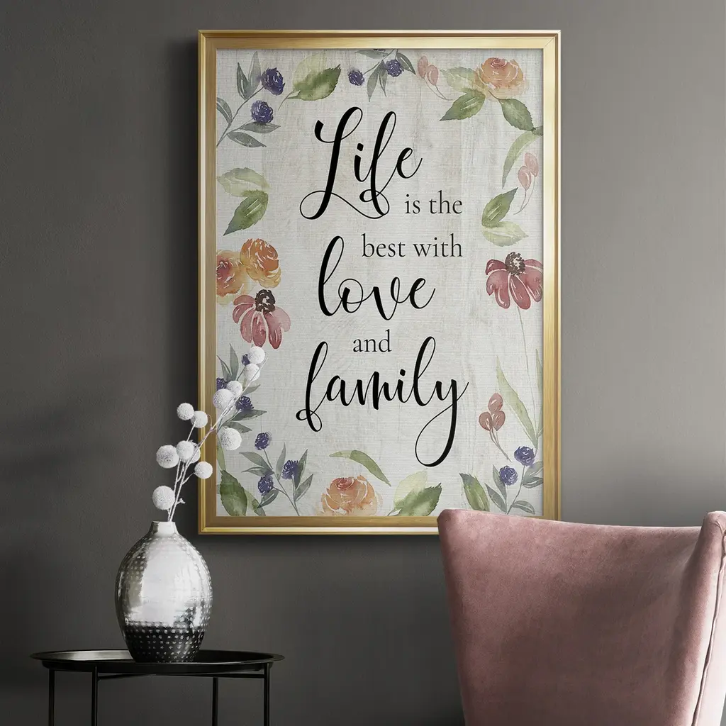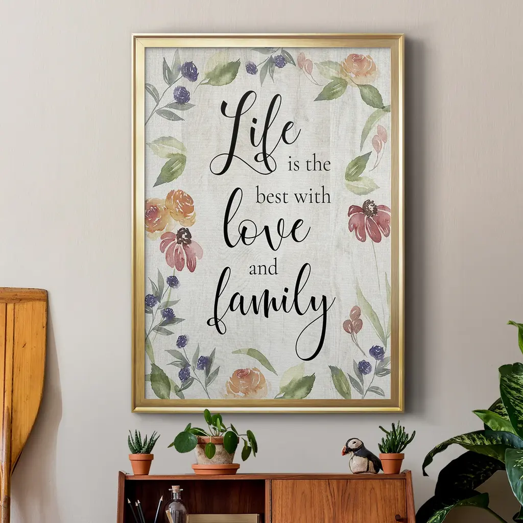 Life is the Best Premium Framed Print - Ready to Hang A Premium Framed Print created to last. Framed in distressed wood and available in an array of sizes and colors Featuring a beveled a solid wood stretcher bar, each piece comes ready to hand 4 SIZES AVAILABLE 30.5''X42.5'' - Overall Size 26.5'X36.5'' - Overall Size 22.5''x30.5'' - Overall Size 18.5''x24.5'' - Overall Size Each piece is made to order. Each piece comes with hanging hardware. Made in the USA Ready to Hang