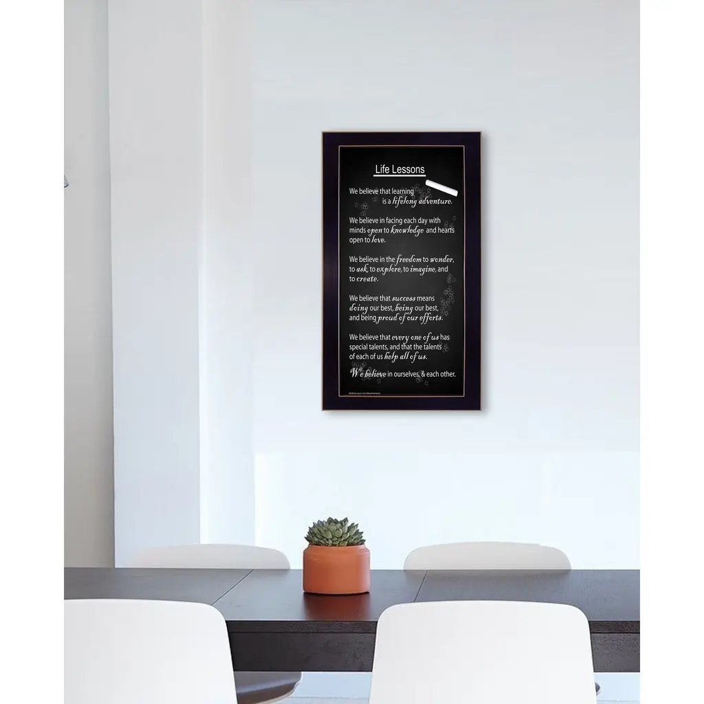 This life lessons 5 black framed print wall art will add a beautiful decorative accent to your decor. This print is a visual artistic expression that allows you to decorate your space in style. Reproduced for you on paper, this hanging decorative accent will be a trendy and fashionable way to dress your walls. Adding this hanging wall art to your space to make your room feel more finished and attractive. Utilize this opportunity to create a focal point in the room with this fabulous wall decor option. 20" H x 11" W x 1" D