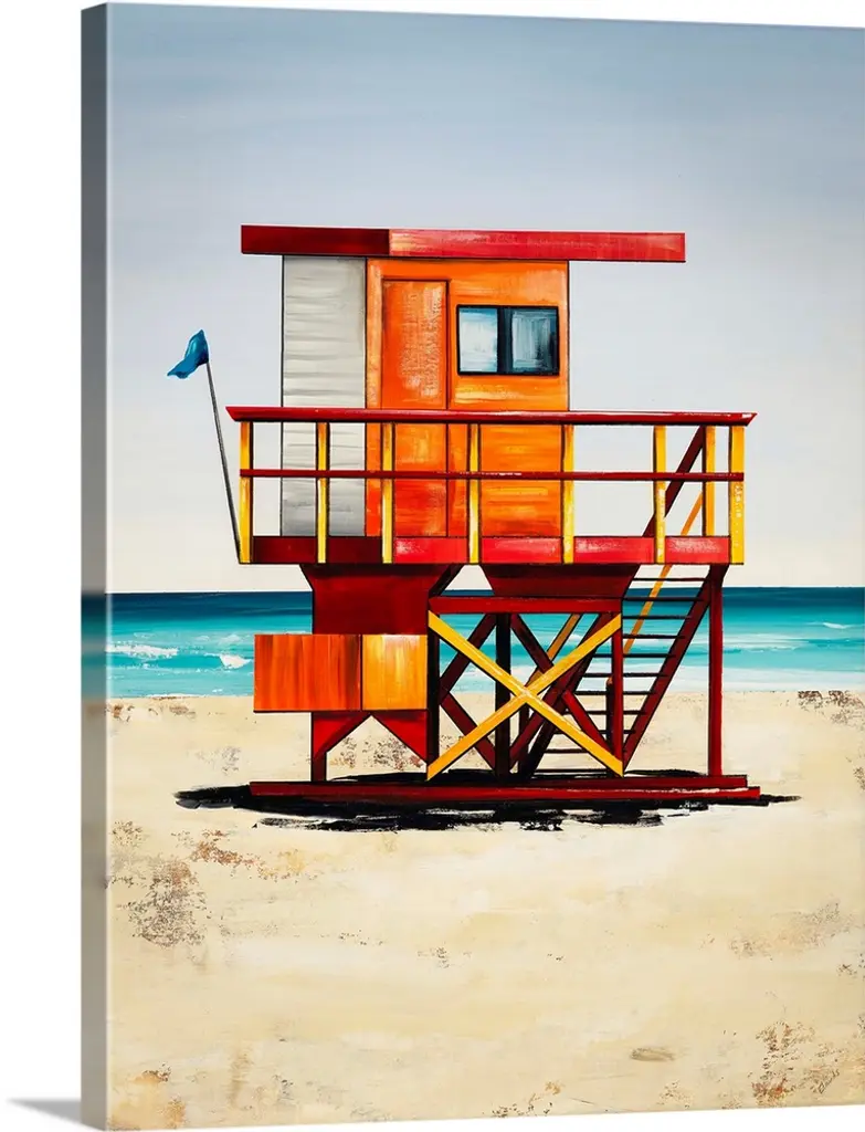 Lifeguard Shack Number 5 Framed Giclee Texturized Art, 11x14