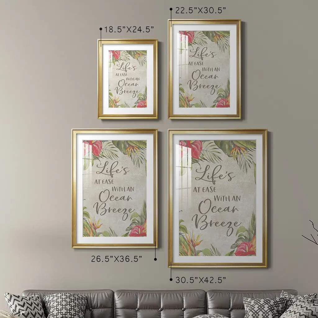 Life's At Ease Premium Framed Print - Ready to Hang A Premium Framed Print created to last. Framed in distressed wood and available in an array of sizes and colors Featuring a beveled a solid wood stretcher bar, each piece comes ready to hand 4 SIZES AVAILABLE 30.5''X42.5'' - Overall Size 26.5'X36.5'' - Overall Size 22.5''x30.5'' - Overall Size 18.5''x24.5'' - Overall Size Each piece is made to order. Each piece comes with hanging hardware. Made in the USA Ready to Hang Giclee Paper Print Acrylic Glass Beveled Matt Board