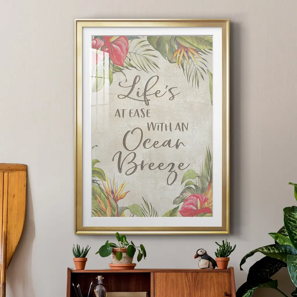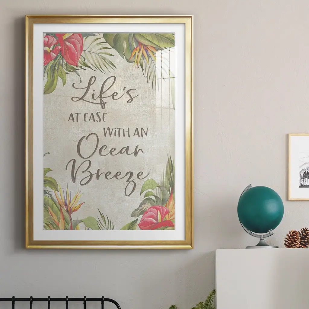 Life's At Ease Premium Framed Print - Ready to Hang A Premium Framed Print created to last. Framed in distressed wood and available in an array of sizes and colors Featuring a beveled a solid wood stretcher bar, each piece comes ready to hand 4 SIZES AVAILABLE 30.5''X42.5'' - Overall Size 26.5'X36.5'' - Overall Size 22.5''x30.5'' - Overall Size 18.5''x24.5'' - Overall Size Each piece is made to order. Each piece comes with hanging hardware. Made in the USA Ready to Hang Giclee Paper Print Acrylic Glass Beveled Matt Board