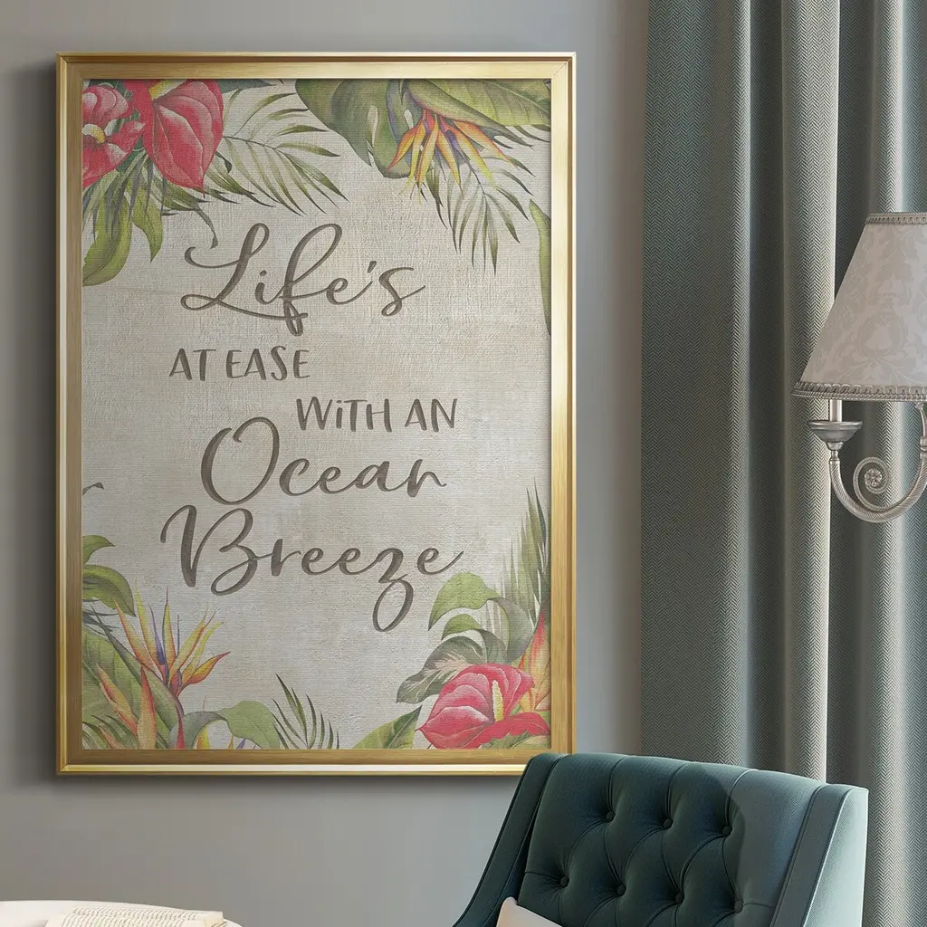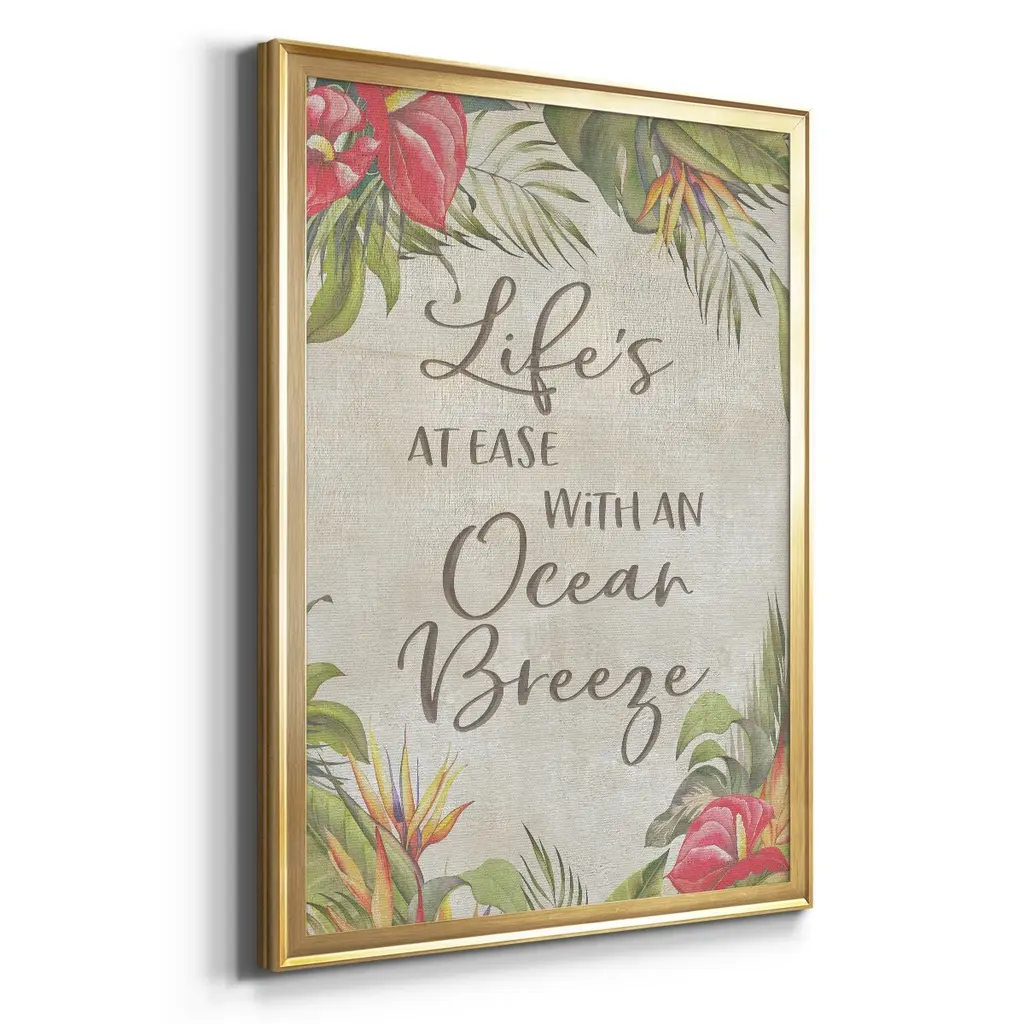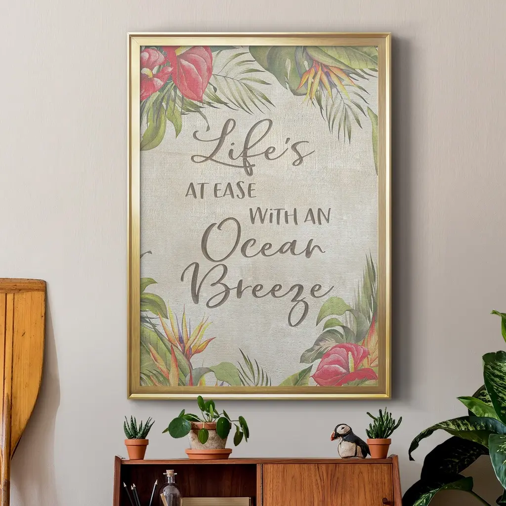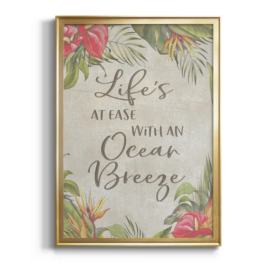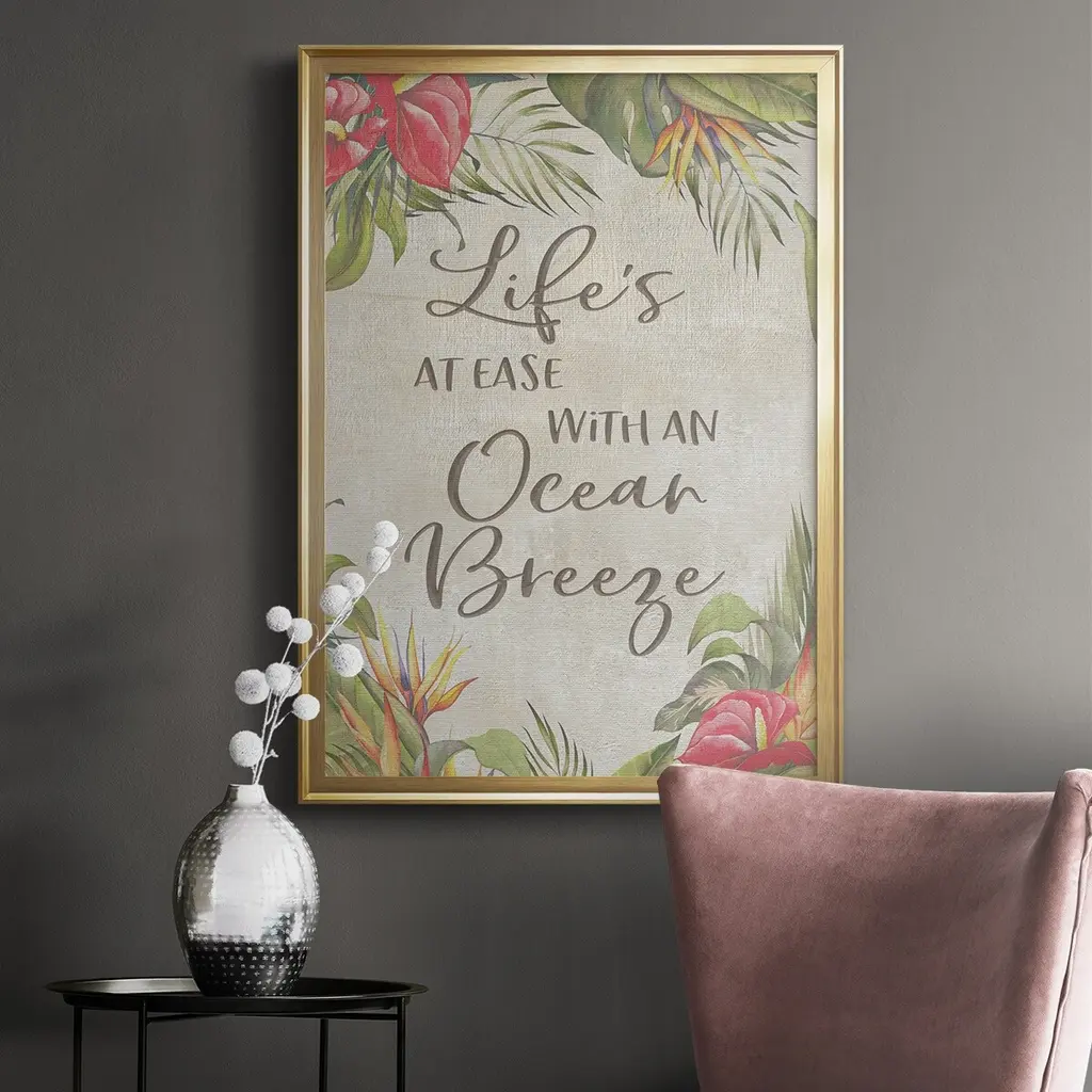 Life's At Ease Premium Framed Print - Ready to Hang A Premium Framed Print created to last. Framed in distressed wood and available in an array of sizes and colors Featuring a beveled a solid wood stretcher bar, each piece comes ready to hand 4 SIZES AVAILABLE 30.5''X42.5'' - Overall Size 26.5'X36.5'' - Overall Size 22.5''x30.5'' - Overall Size 18.5''x24.5'' - Overall Size Each piece is made to order. Each piece comes with hanging hardware. Made in the USA Ready to Hang