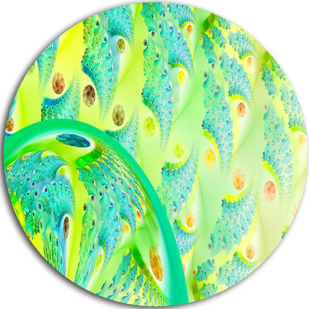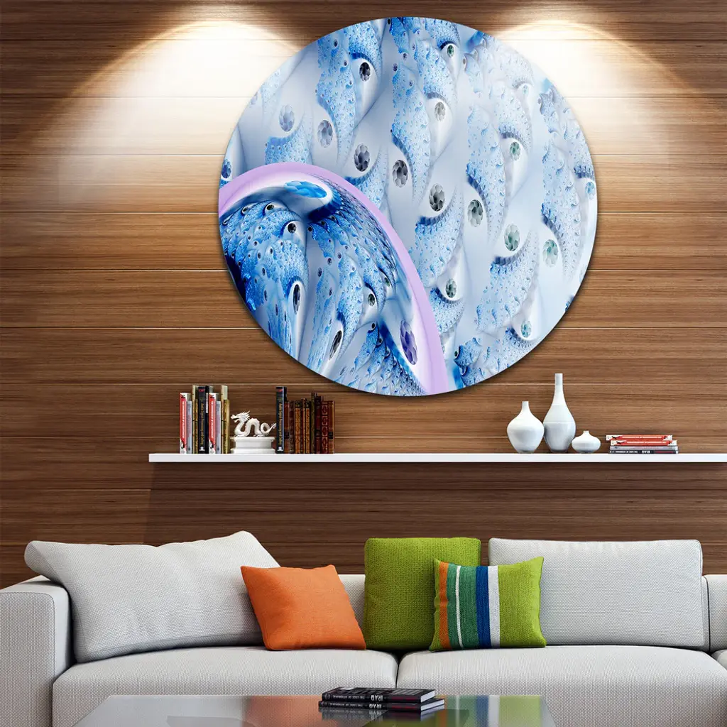 Bring Contemporary Abstraction to your home with this large Circle Metal wall art. This Light Blue Fractal Abstract Flower Metal Artwork makes it the focal point of any room or office. - White Gloss Coating ensures colors are extra vibrant with light reflection.- Aluminum grade Sheet Metal with 1 inch mounting frame on the back giving the illusion that the artwork is floating on the wall..- Mounting Brackets are included along with instructions.- High Quality Digital images are created directly into a glossy aluminum panel producing a stunning and captivating print into the glossy finish of the metal.- Water, Fire and Scratch resistant HD Aluminum panels.- Looks better than any photo paper and guaranteed to last at least 20 years- Easy to clean with a microfiber cloth. Colors are far superior to regular Canvas Art. - Easy to Hang