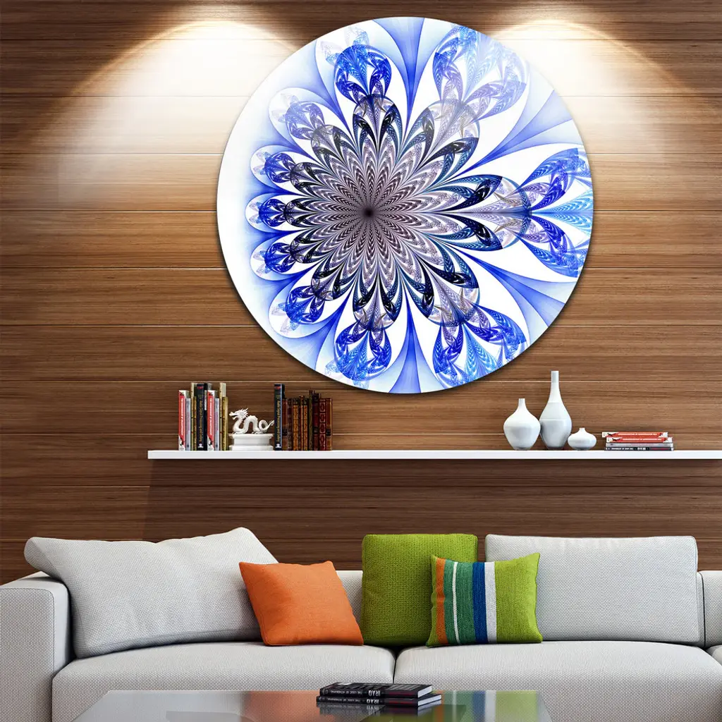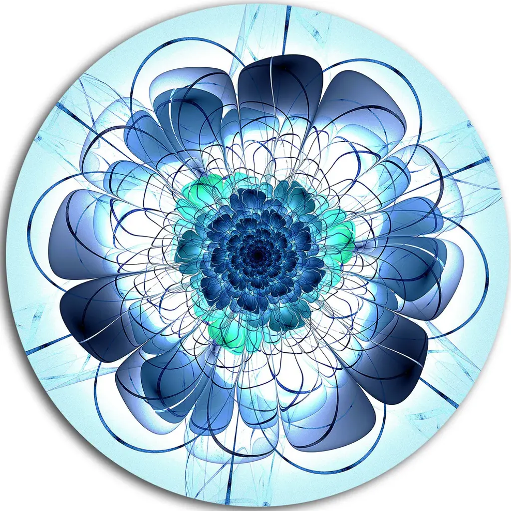 Bring Contemporary Abstraction to your home with this large Circle Metal wall art. This Light Blue Fractal Flower Digital Art Metal Artwork makes it the focal point of any room or office. - White Gloss Coating ensures colors are extra vibrant with light reflection.- Aluminum grade Sheet Metal with 1 inch mounting frame on the back giving the illusion that the artwork is floating on the wall..- Mounting Brackets are included along with instructions.- High Quality Digital images are created directly into a glossy aluminum panel producing a stunning and captivating print into the glossy finish of the metal.- Water, Fire and Scratch resistant HD Aluminum panels.- Looks better than any photo paper and guaranteed to last at least 20 years- Easy to clean with a microfiber cloth. Colors are far superior to regular Canvas Art. - Easy to Hang