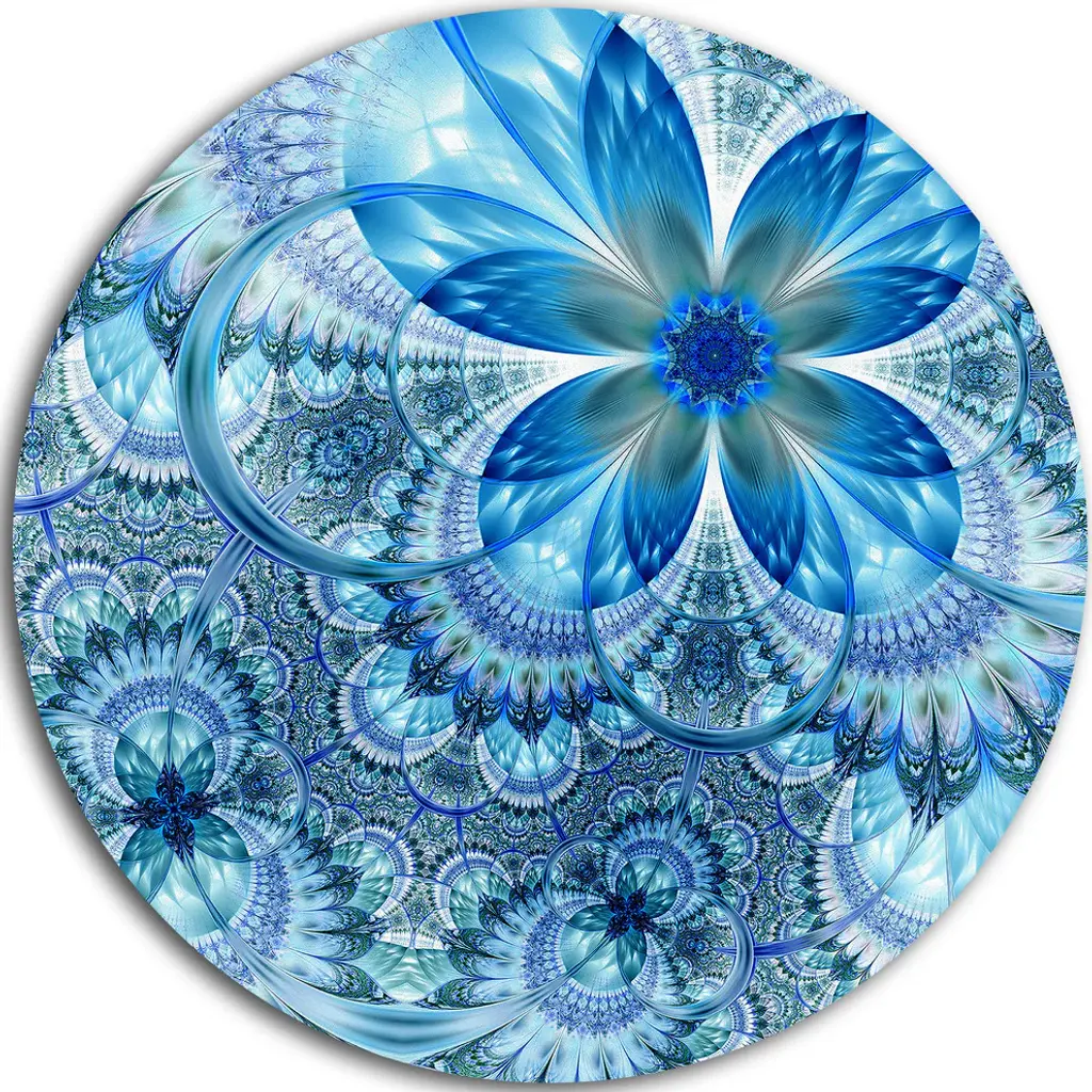 Light Blue Fractal Flower Digital Art, Floral Round Wall Art, 36"
