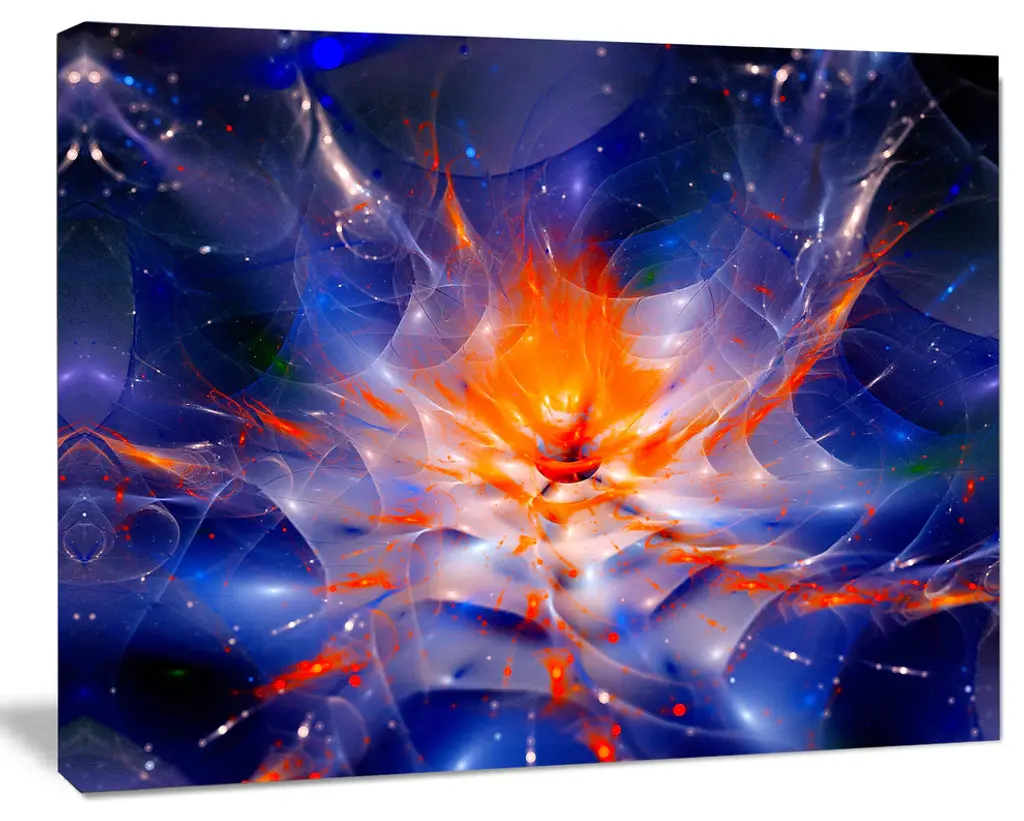 Light Blue Fractal Flower In Dark, Floral Abstract Disc Artwork, 38"