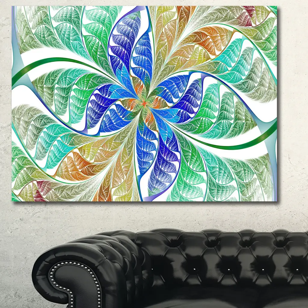 Light Blue Fractal Stained Glass, Oversized Abstract Canvas Art Print, 60x40