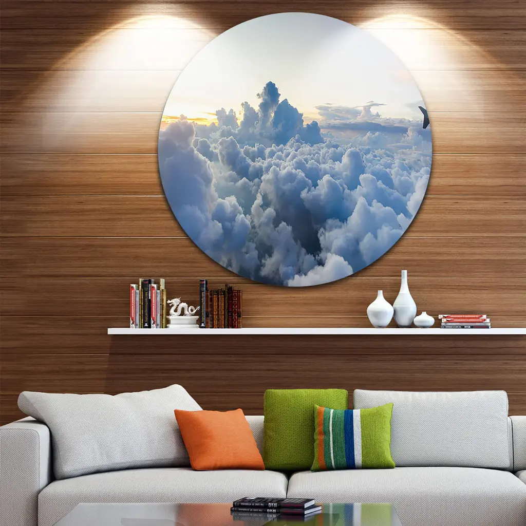 Light Blue Heavy Clouds In Sky, Landscape Disc Metal Artwork, 23"