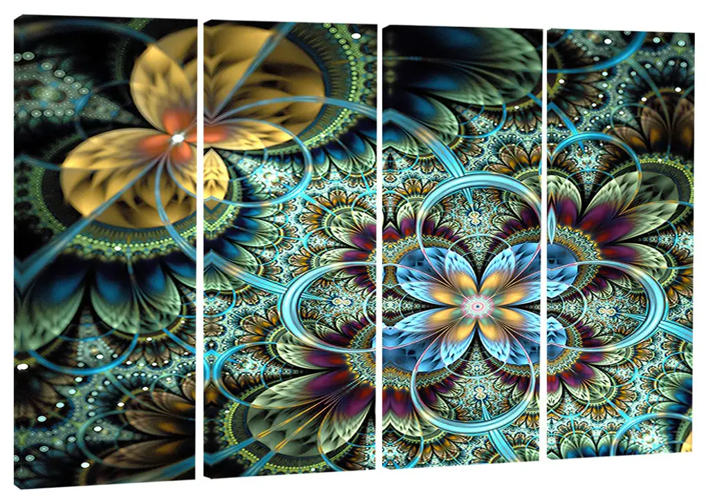 Light Blue Living Cells Fractal Design, Oversized Abstract Canvas Print, 60x40