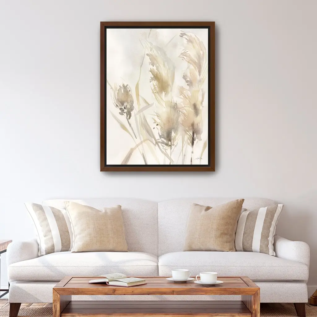 Enhance your home decor with this exquisite neutral botanical canvas art print. Featuring a delicate arrangement of botanical elements in soft, earthy tones, this artwork brings a touch of nature's elegance to any space. The subtle hues and organic shapes create a serene atmosphere, making it perfect for both modern and traditional interiors.Available in black frame, dark walnut frame and oak frames, or as a frameless canvas. Our Gallery Wrap Canvas Prints are proudly assembled with high quality materials in California, USA. Each piece is printed on a thick, archival grade canvas using Giclee technology. It is then hand-stretched by our experienced artisans over solid pine bars, which will not warp over time. The final product is a piece personally crafted for you to confidently display on your wall. Care and Assembly: Ensure that the location of your piece has little to no exposure to heat, sunlight, and moisture. Wipe clean, only if needed. Each piece includes a sawtooth hanger to hang on your wall vertically.