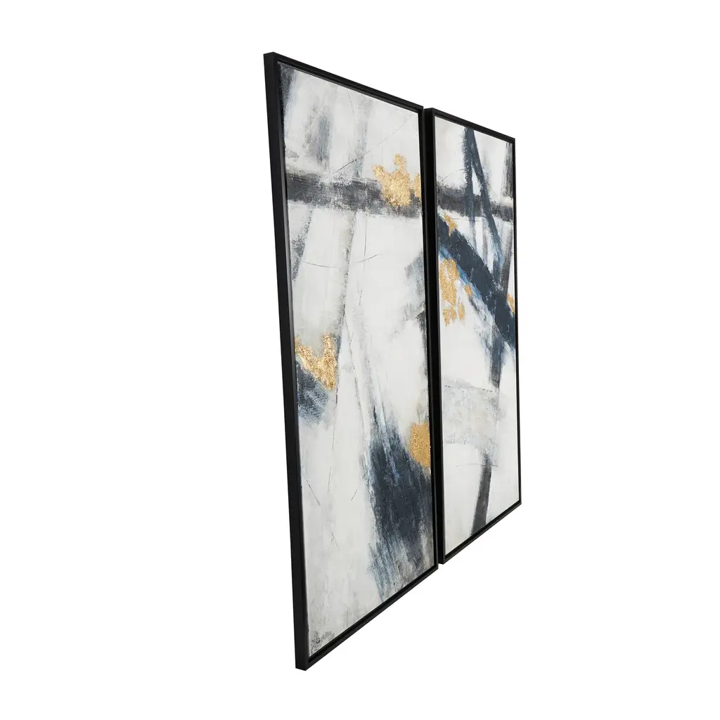 Light Gray Canvas Lines Abstract Framed Wall Art With Gold Foil Accents (Set Of 2) - Grey - Black