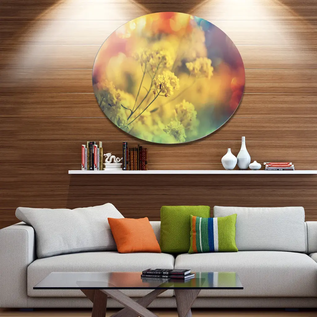 Light Little Yellow Flowers Background, Flower Round Wall Art, 11"