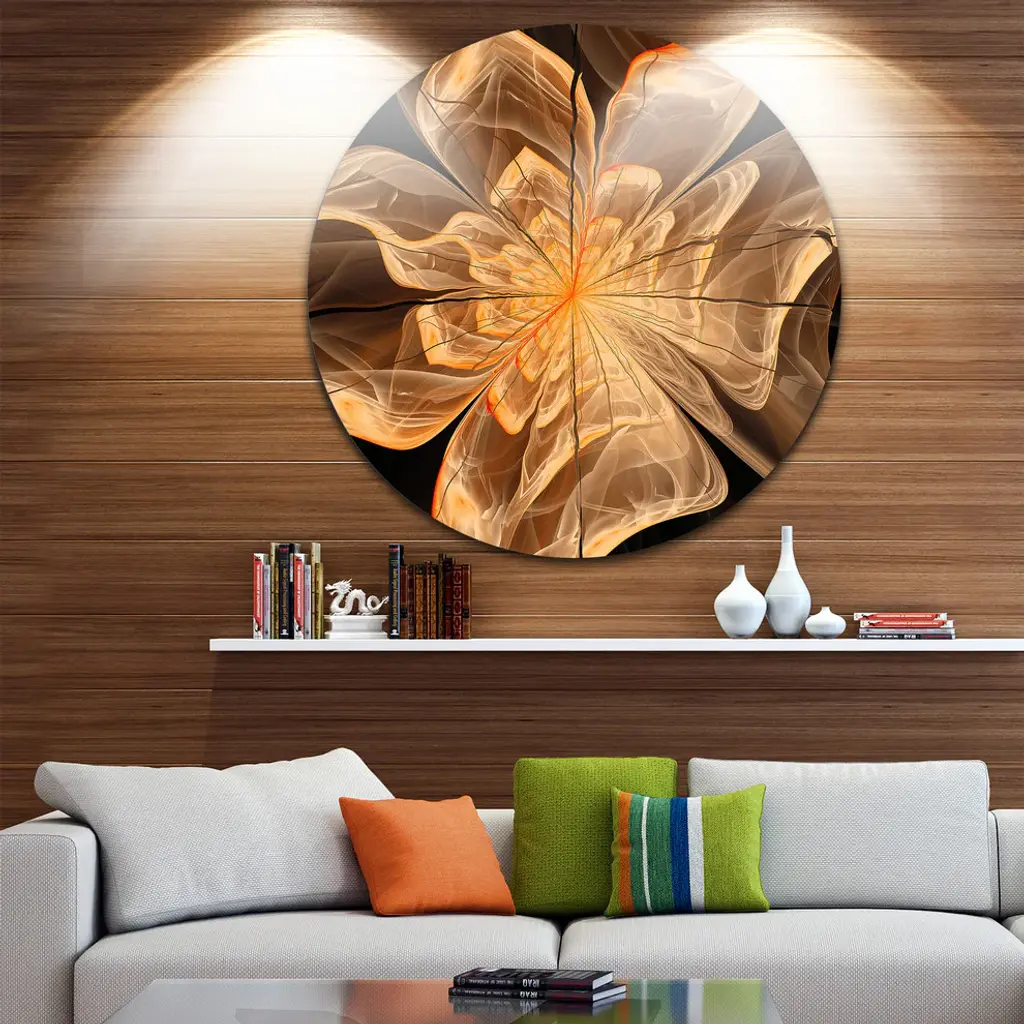 Light Orange Symmetrical Fractal Flower, Floral Disc Metal Artwork, 36"