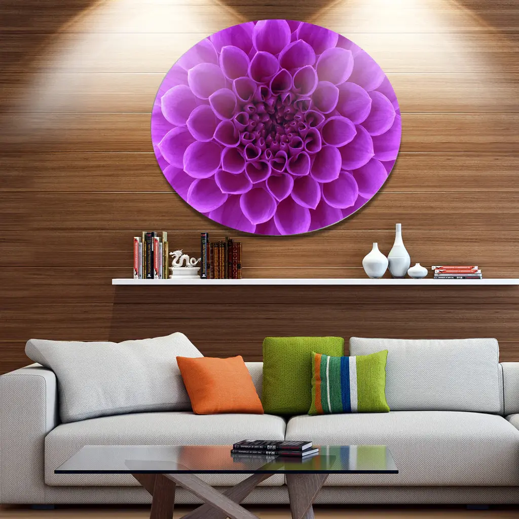 Bring Contemporary Abstraction to your home with this large Circle Metal wall art. This Light Purple Abstract Flower Petals Metal Artwork makes it the focal point of any room or office. - White Gloss Coating ensures colors are extra vibrant with light reflection.- Aluminum grade Sheet Metal with 1 inch mounting frame on the back giving the illusion that the artwork is floating on the wall..- Mounting Brackets are included along with instructions.- High Quality Digital images are created directly into a glossy aluminum panel producing a stunning and captivating print into the glossy finish of the metal.- Water, Fire and Scratch resistant HD Aluminum panels.- Looks better than any photo paper and guaranteed to last at least 20 years- Easy to clean with a microfiber cloth. Colors are far superior to regular Canvas Art. - Easy to Hang