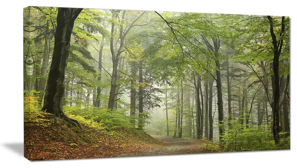 The Light Through Green Fall Forest canvas art print is sure to make an impression on anyone who sees it. This artwork is gallery wrapped around a 1-inch solid wood frame and arrives carefully packaged and entirely ready to hang on the wall. Design Art only uses the highest resolution and pigments to ensure a crisp colorful print that is never faded or pixelated. This artwork is sure to be a conversation starter in any home or office.