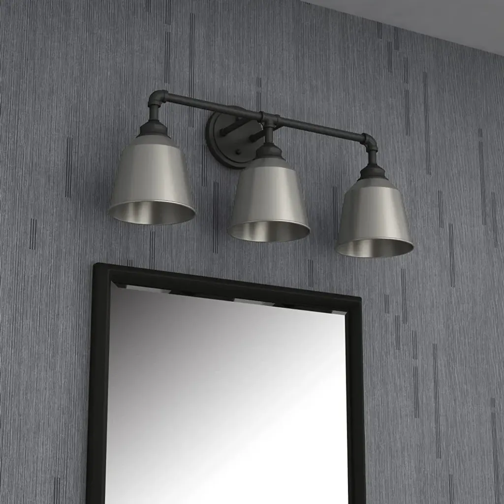 Light Vanity Light, Painted Silver Metal Shade, Burning Gray, 3-Light