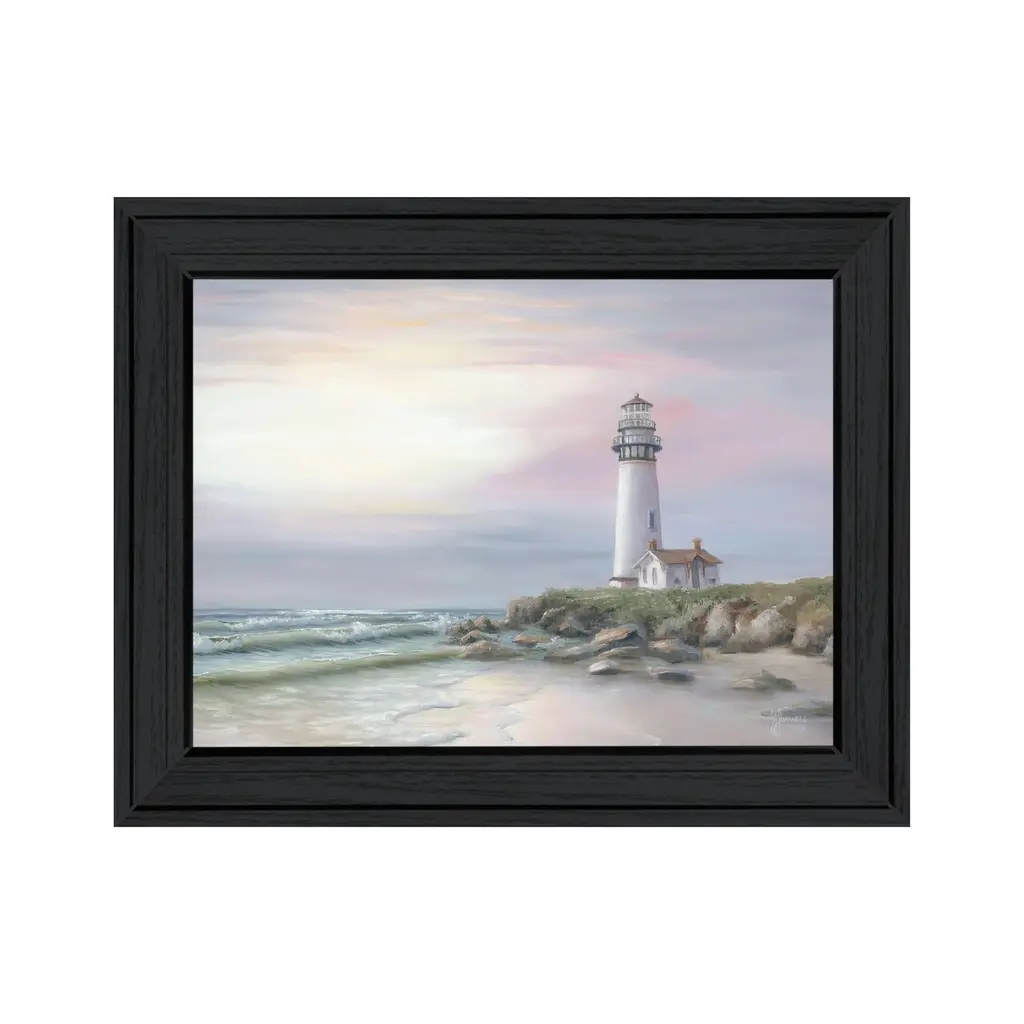 The lighthouse 3 black framed print wall art is the perfect decorative accessory for your home. This print is a visual artistic expression that allows you to decorate your space in style. Reproduced for you on paper, this hanging decorative accent will be a trendy and fashionable way to dress your walls. Hang on your wall to add some up to date fashion and decoration. Utilize this opportunity to create a focal point in the room with this fabulous wall decor option. 18" H x 14" W x 1" D