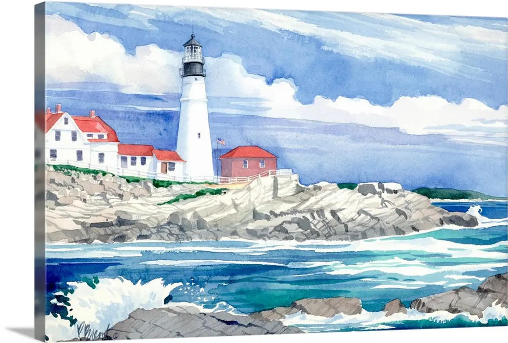 Ideal for adding a coastal note to your decor, this lighthouse painting is beautifully reproduced on deckled paper, floated over a mat, and displayed in a wood frame. Arrives ready to hang.