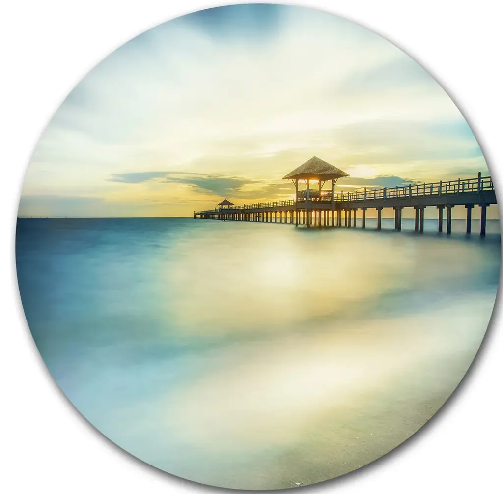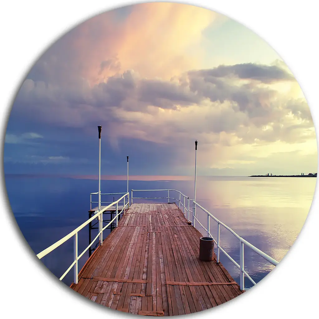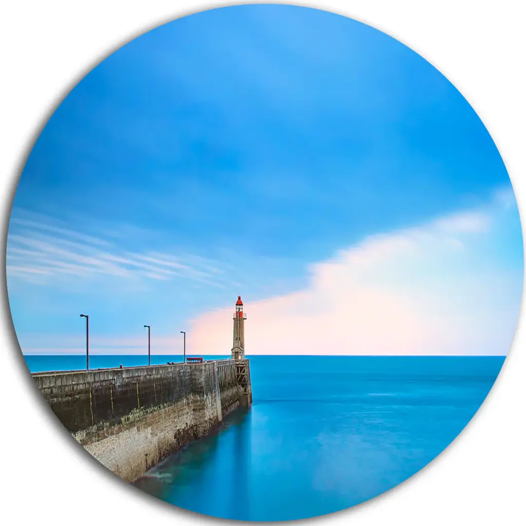 Bring Contemporary Abstraction to your home with this large Circle Metal wall art. This Lighthouse on Coast and Cloudy Sky Metal Artwork makes it the focal point of any room or office. - White Gloss Coating ensures colors are extra vibrant with light reflection.- Aluminum grade Sheet Metal with 1 inch mounting frame on the back giving the illusion that the artwork is floating on the wall..- Mounting Brackets are included along with instructions.- High Quality Digital images are created directly into a glossy aluminum panel producing a stunning and captivating print into the glossy finish of the metal.- Water, Fire and Scratch resistant HD Aluminum panels.- Looks better than any photo paper and guaranteed to last at least 20 years- Easy to clean with a microfiber cloth. Colors are far superior to regular Canvas Art. - Easy to Hang