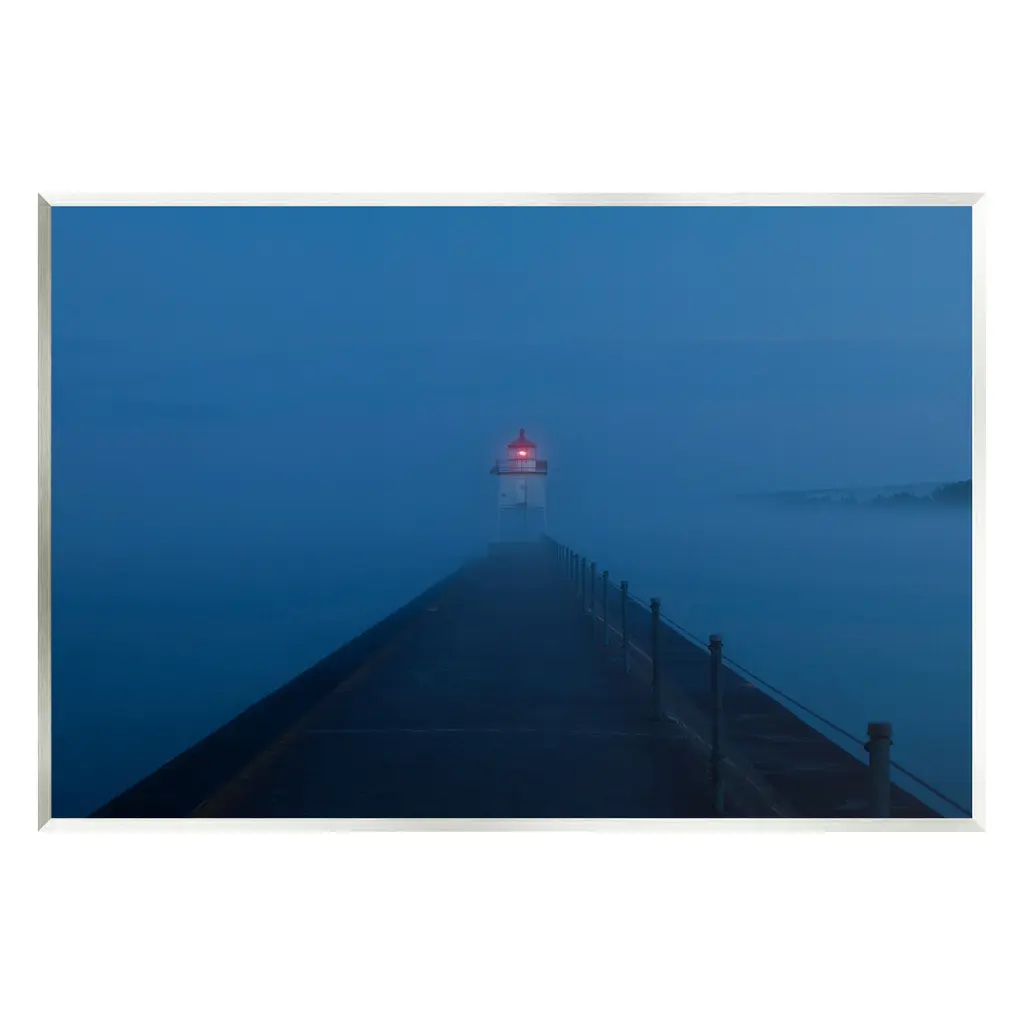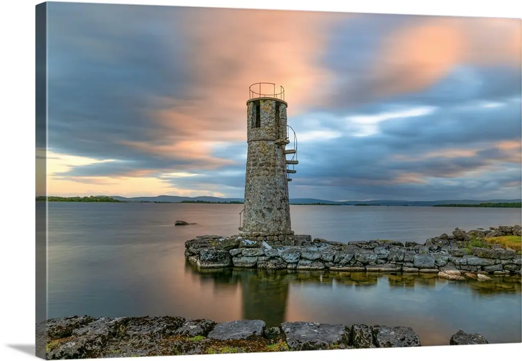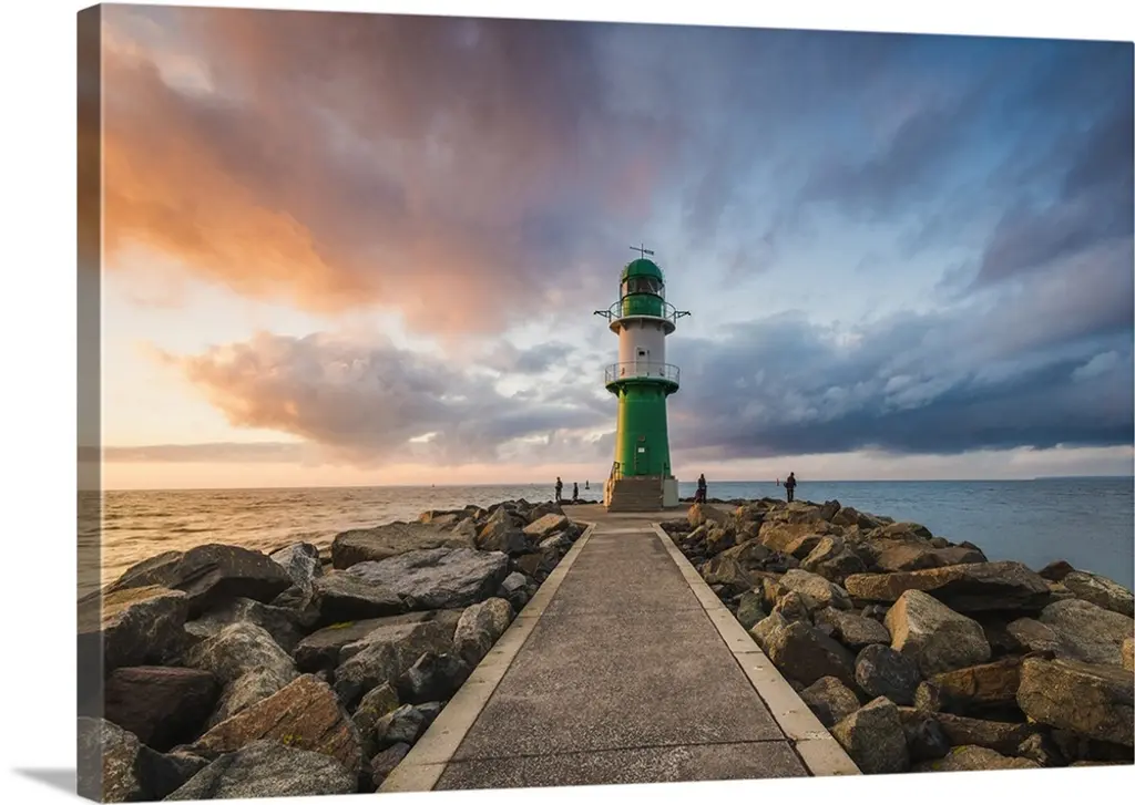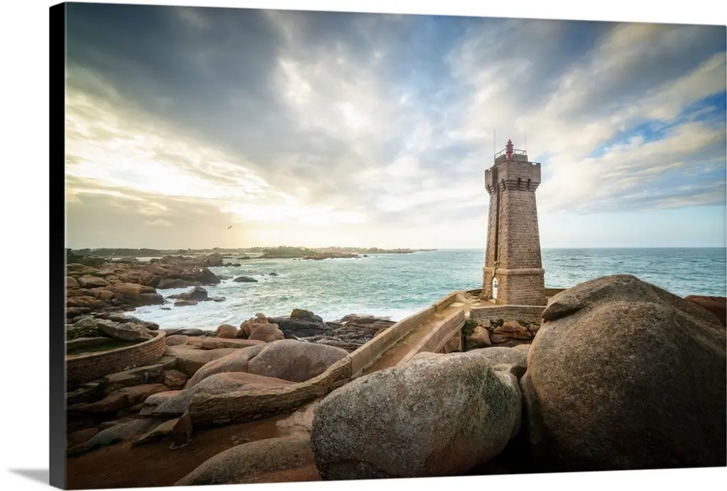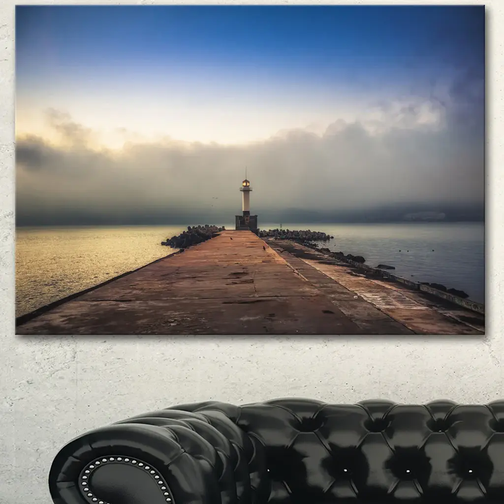 Lighthouse On Coast And Cloudy Sky, Modern Canvas Art Print, 60"x28"