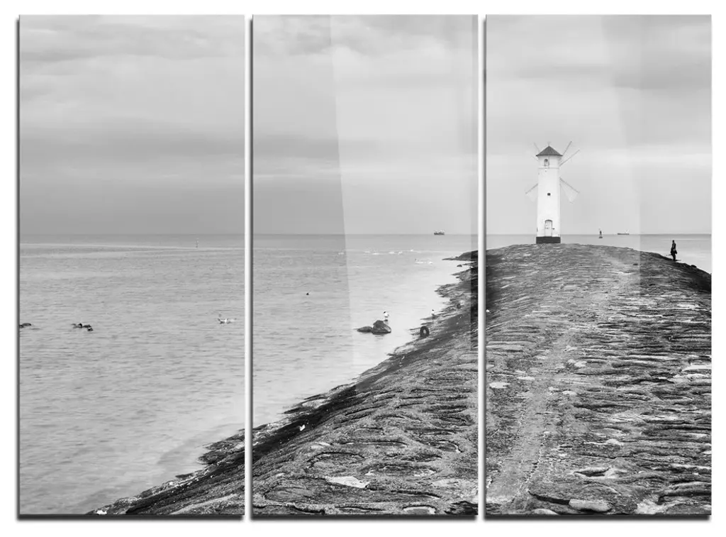 "Lighthouse Windmill Stawa Mlyny" Metal Wall Art, 3 Panels, 36"x28"