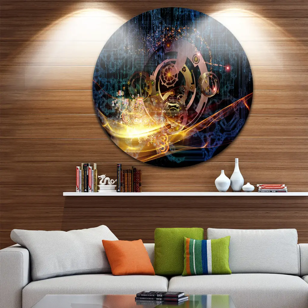 Lights Of Gears, Abstract Digital Art Large Disc Metal Wall Art, 23"