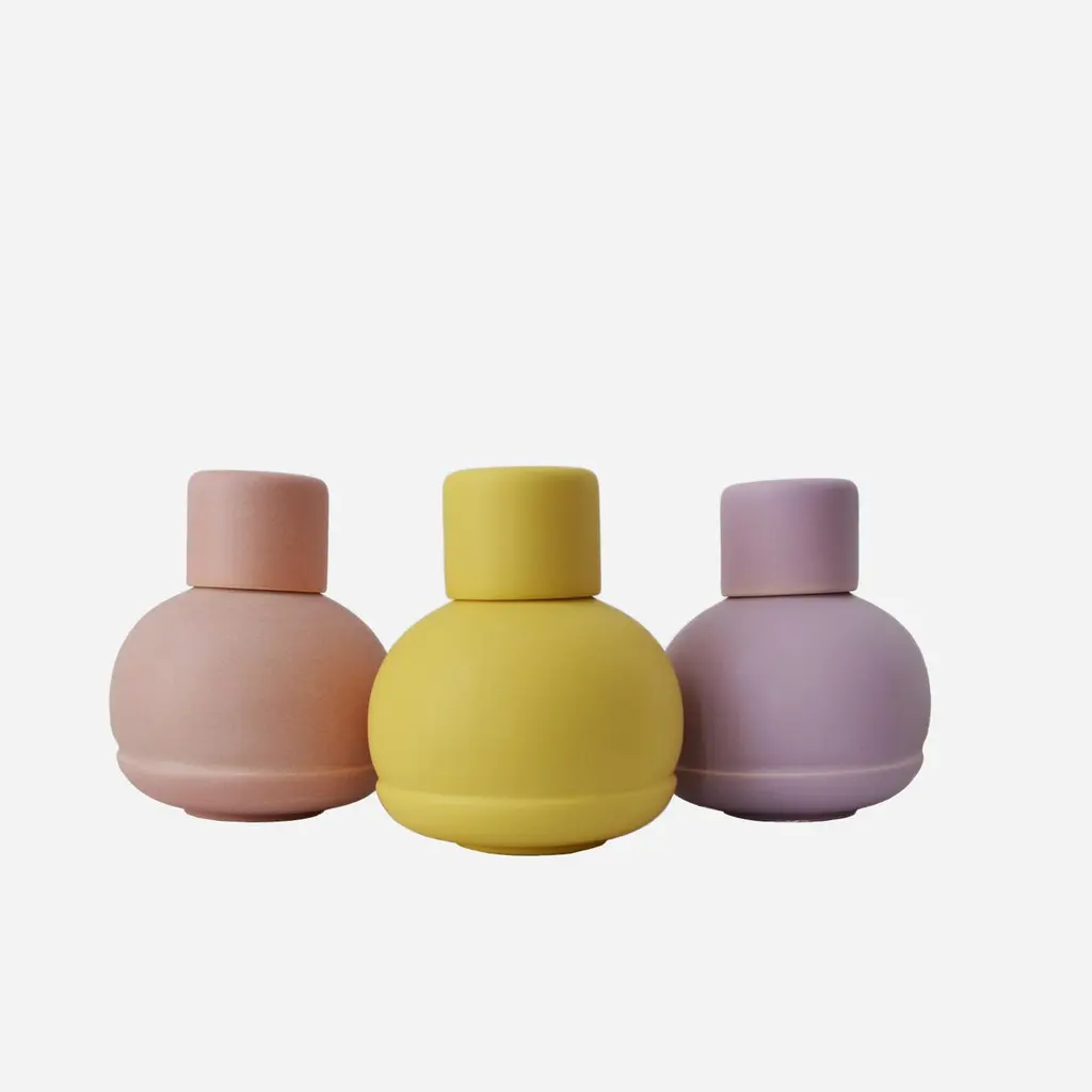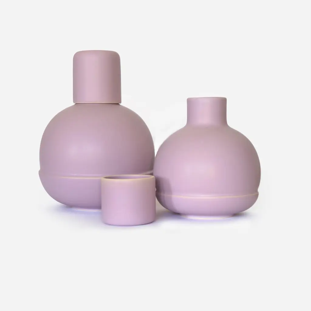 Our carafe colection is a tribute to the traditional pitchers of the regions of Tonala´ and Tlaquepaque in Jalisco, these two regions developed during the period of the conquest as pottery centers.Originally these bottles were used to store water in addition to keeping it a few degrees below room temperature, their low temperature cooking allows the jug to breathe water and this in contact with the outside air cools the jug and therefore the liquid inside.To avoid moisture stains on the surfaces where the jug is placed, a plate is placed. The jugs were usually decorated with paintings around the body of the bottle, the most common are lines that border the circumference. In general, a glass of the same material will also serve as a lid to avoid insects inside the bottle.High Temperature Ceramic.In memory of the traditional carafe, we preserve the general shape, spherical with a short neck, the decoration is concentrated in color and a horizontal line that borders the sphere, simulating the lines painted in the traditional version and in turn uniting the idea of the plate. In which the plate was used to avoid stains, this line is revealed to the touch and the lighting that the object receives, creating a game of volumes that reinforces the piece with stability.This object that until recently could be seen commonly in the kitchens of the houses in the center of Guadalajara is an element that recalls the warm climate and the artisan work of the region.For the world wide contemporary kitchens.