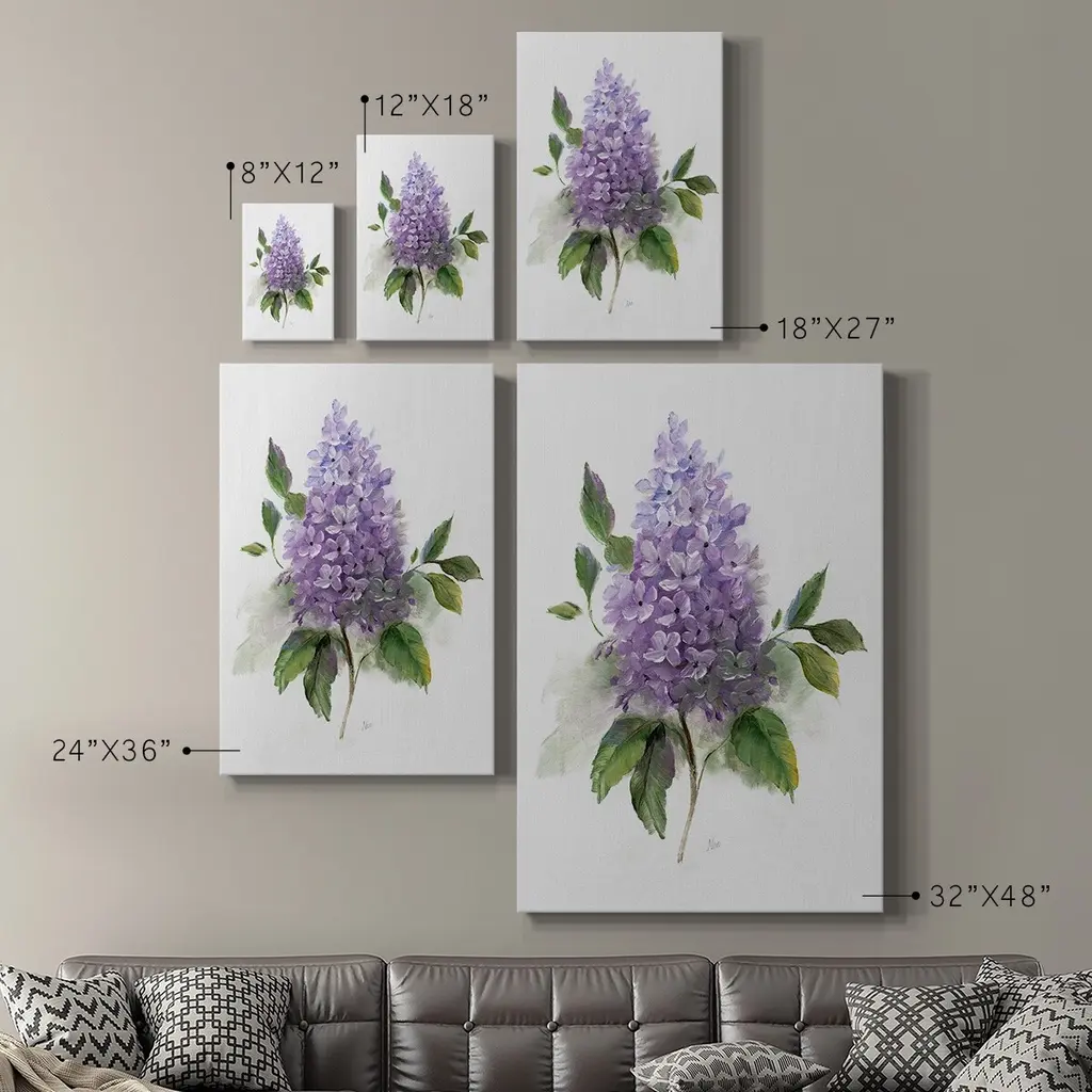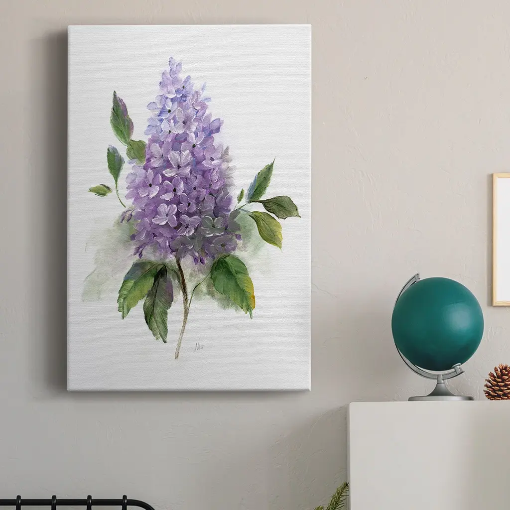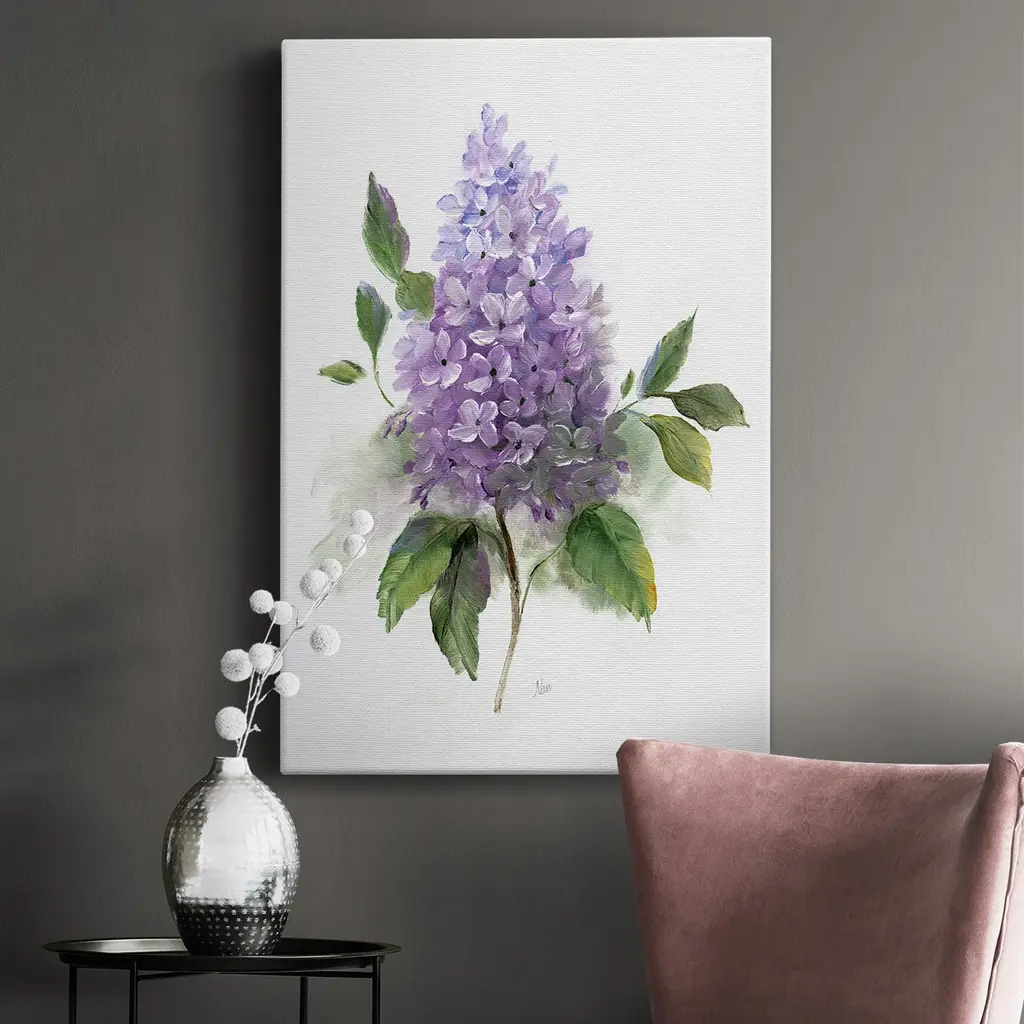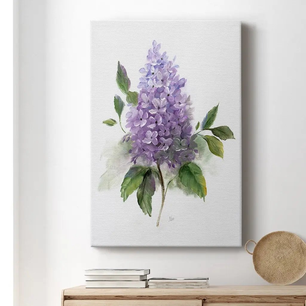 Lilac Romance I Premium Gallery Wrapped Canvas - Ready to Hang A premium hang stretched gallery wrapped canvas print created to last. Featuring a beveled a solid wood stretcher bar, each piece comes ready to hang 6 SIZES AVAILABLE 8''X12'' - Overall Size 12'X18'' - Overall Size 18''x27'' - Overall Size 24''x36'' - Overall Size 32''x48'' - Overall Size 40"x60" - Overall Size Each piece is made to order. Built to Last Each piece comes ready to hang Solid wood stretcher Fade and Water resistant Made domestically