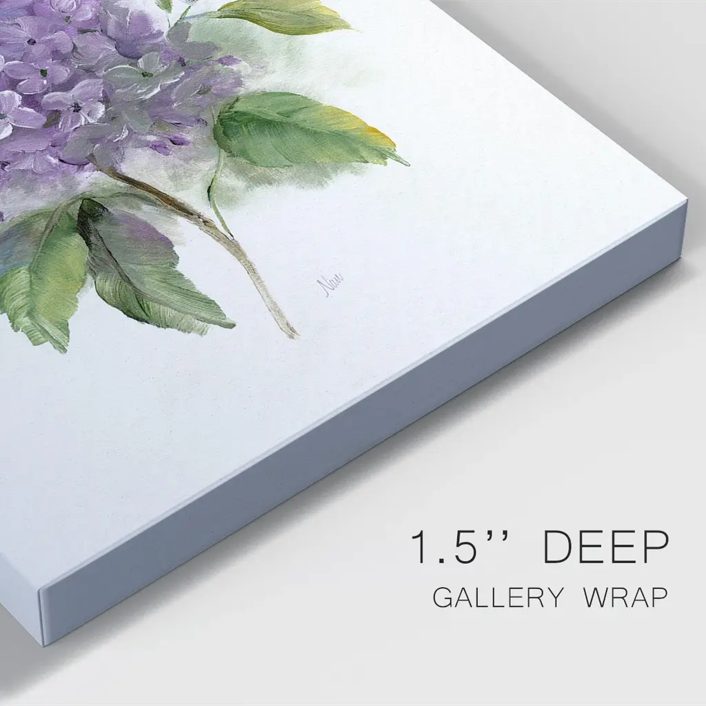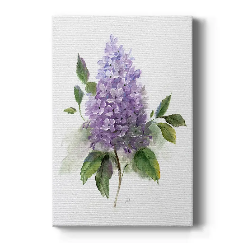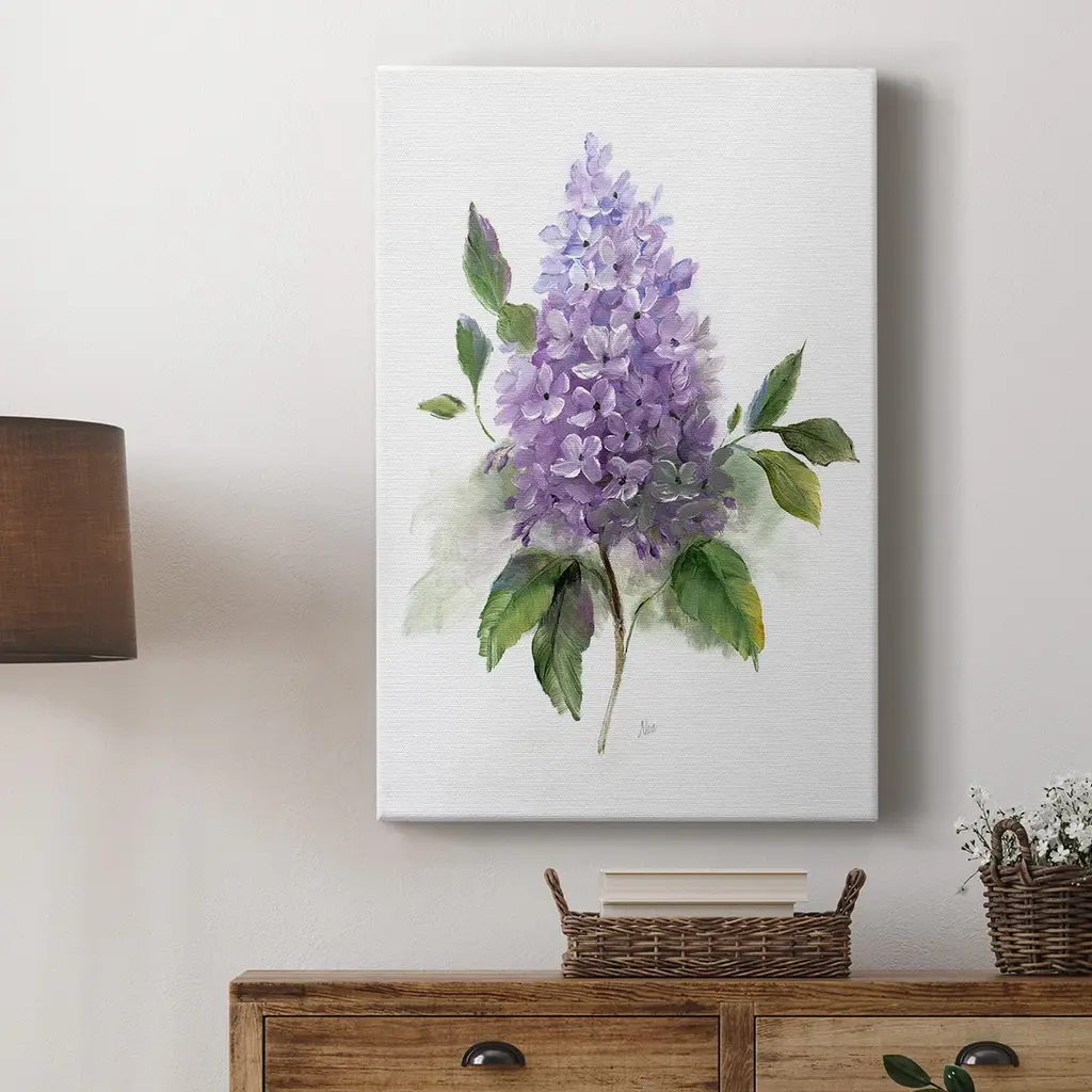 Lilac Romance I Premium Gallery Wrapped Canvas - Ready to Hang A premium hang stretched gallery wrapped canvas print created to last. Featuring a beveled a solid wood stretcher bar, each piece comes ready to hang 6 SIZES AVAILABLE 8''X12'' - Overall Size 12'X18'' - Overall Size 18''x27'' - Overall Size 24''x36'' - Overall Size 32''x48'' - Overall Size 40"x60" - Overall Size Each piece is made to order. Built to Last Each piece comes ready to hang Solid wood stretcher Fade and Water resistant Made domestically