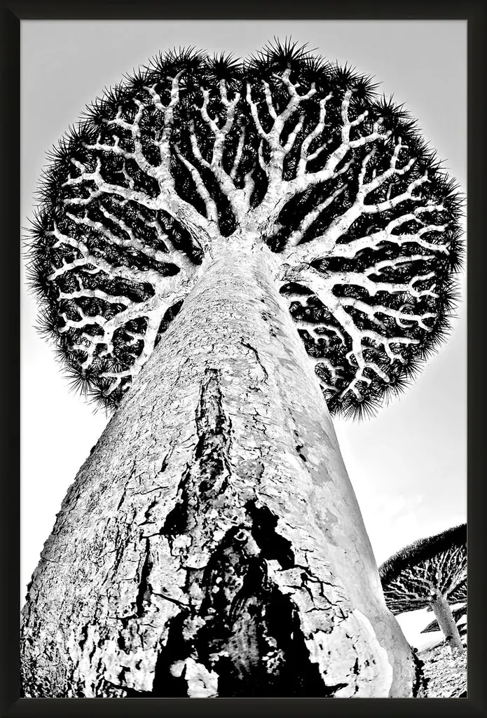 This desert image of a dragon's blood tree is printed on high-quality paper and displayed in a charcoal-hued wood frame, which perfectly complements the color scale of the image. Part of the new art collection from design and home furnishings leader Lillian August, this piece arrives ready to hang.