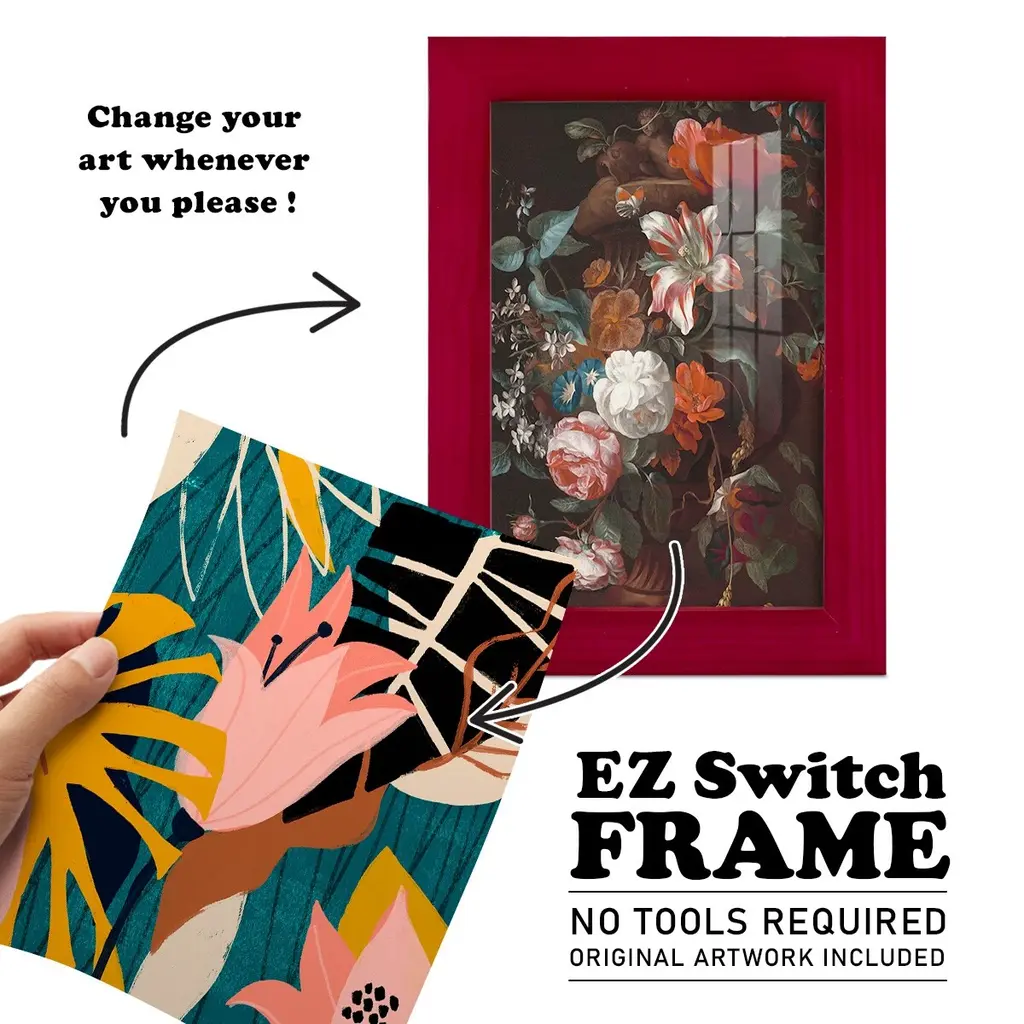 Lily Lagoon II -EZ SWITCH Framed Print w/glass-Cherry Red A delightful, framed print. Featuring a solid wood frame with real wood glass. This premium print is giclee quality. In addition, every frame features a removable back and table top stand. This allows you to change your art in the future or to just stand the art on a table for a new look. We are sure you'll enjoy our new series of EZ SWITCH Framed Art. Solid Wood Frame Real Glass Removable / Replaceable Art Built in Tabletop Stand Sizes range from 4x6 up to 12x15 - buy just one or pair them up as sets as you see fit.