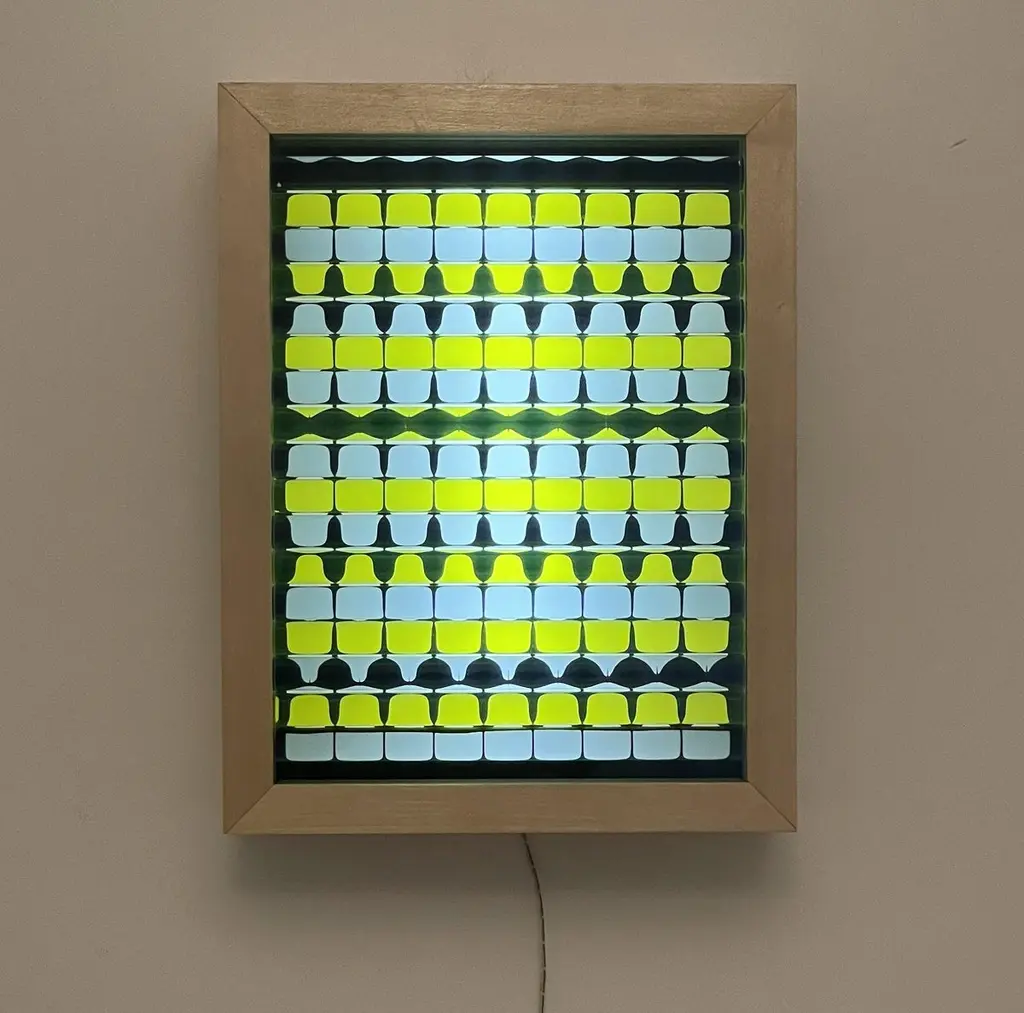 Limbus kinetic light sculpture by Studio LampentLimited editionDimensions: W 34 x D 13 x H 44 cmMaterials: acrylic sheets, acrylic rods, lights, metal, wood.All our lamps can be wired according to each country. If sold to the USA it will be wired for the USA for instance.Studio Lampent is a Sweden based lighting design and artistic studio, founded and driven by Stavros Kotsakis since 2011. The name Lampent is the conjunction of the words lamp and lambent and describes our main goal: to create lighting products with a playful radiance.With the purpose to explore the endless adventures of light while interacting with fascinating materials, we are dedicated in designing series of exclusive handcrafted luminaires which add a genuine warmth to a wide range of interiors. Putting light into the center point of the development process allows the creative journey from form to function to happen. Becoming itself part of symmetrical structures or transformed objects, light is being naturally turned into a basic element for geometry.