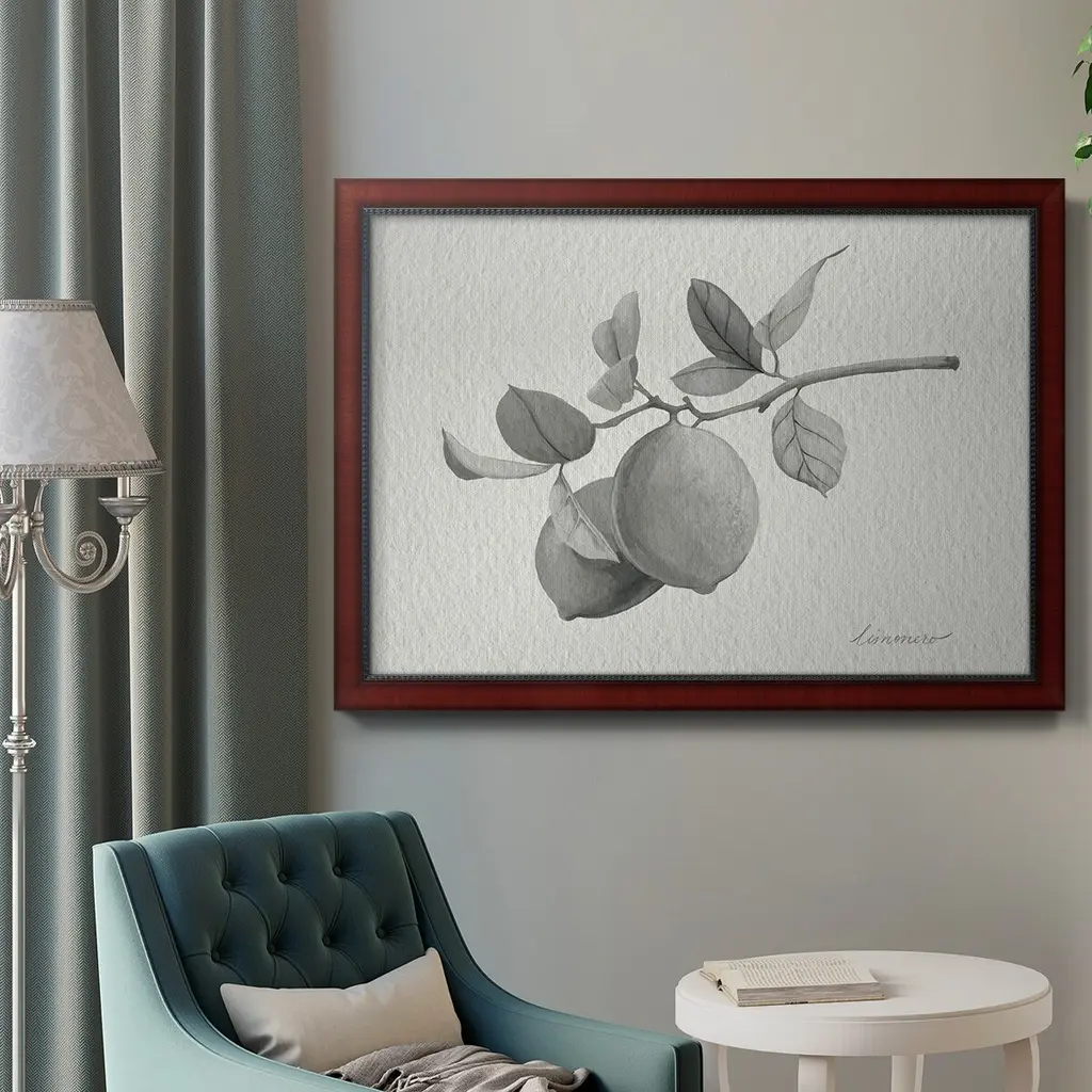 Limonero I Premium Framed Canvas- Ready to Hang A Premium Framed Canvas created to last. Framed in distressed wood and available in an array of sizes and colors Featuring a beveled a solid wood stretcher bar, each piece comes ready to hand 3 SIZES AVAILABLE 16''X20'' - Overall Size 18'X27'' - Overall Size 24''x36'' - Overall Size Each piece is made to order. Each piece comes with hanging hardware. Made in the USA Ready to Hang Giclee Paper Print Acrylic Glass Beveled Matt Board