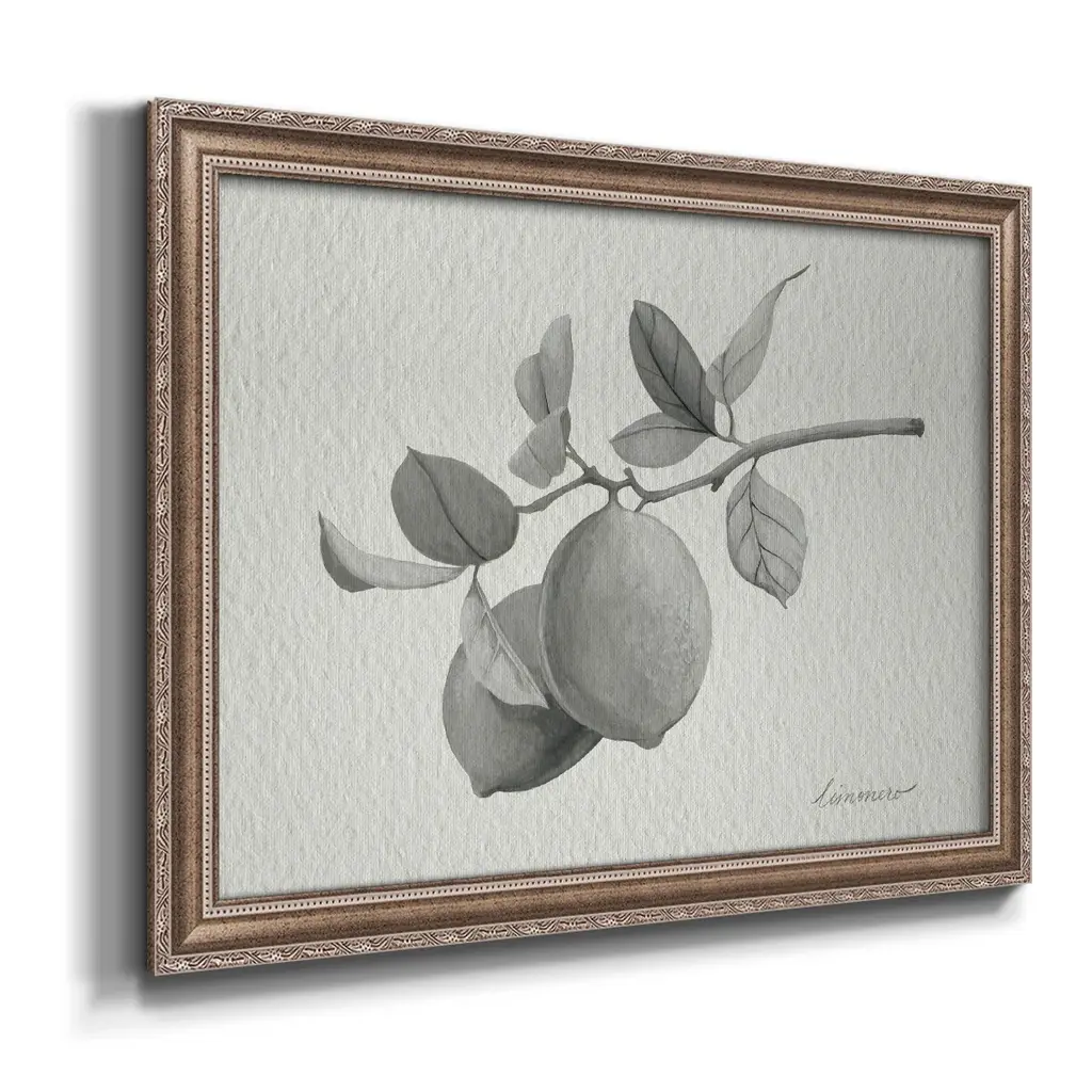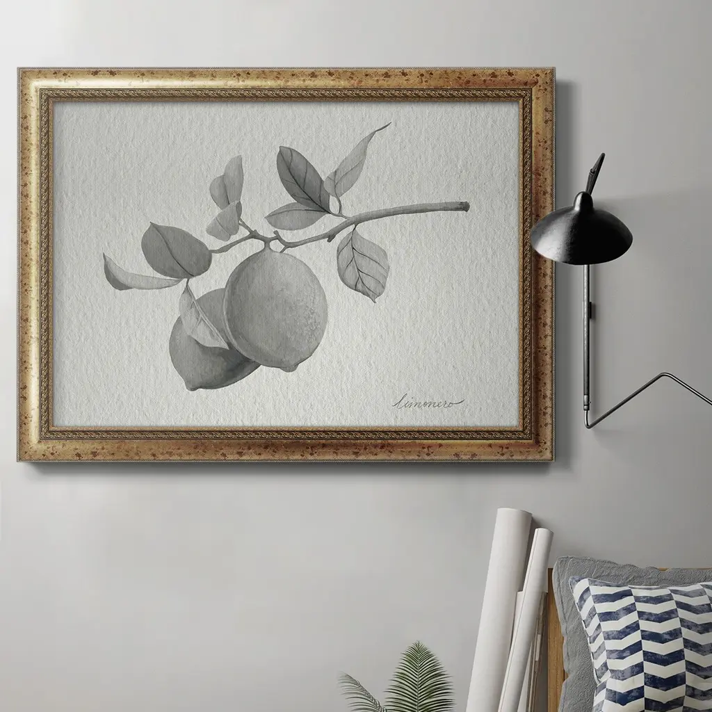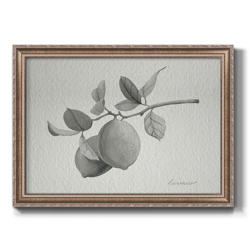 Limonero I Premium Framed Canvas- Ready to Hang A Premium Framed Canvas created to last. Framed in distressed wood and available in an array of sizes and colors Featuring a beveled a solid wood stretcher bar, each piece comes ready to hand 3 SIZES AVAILABLE 16''X20'' - Overall Size 18'X27'' - Overall Size 24''x36'' - Overall Size Each piece is made to order. Each piece comes with hanging hardware. Made in the USA Ready to Hang Giclee Paper Print Acrylic Glass Beveled Matt Board
