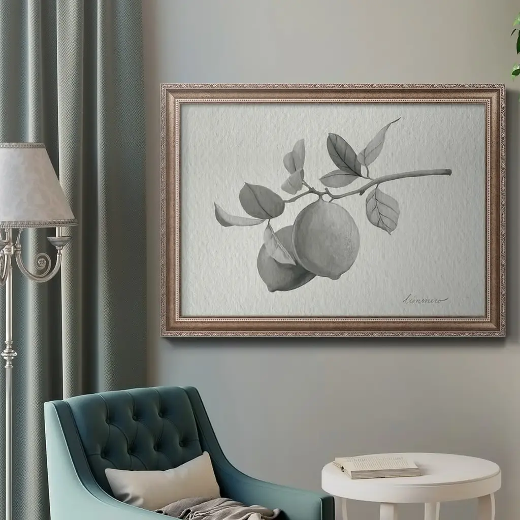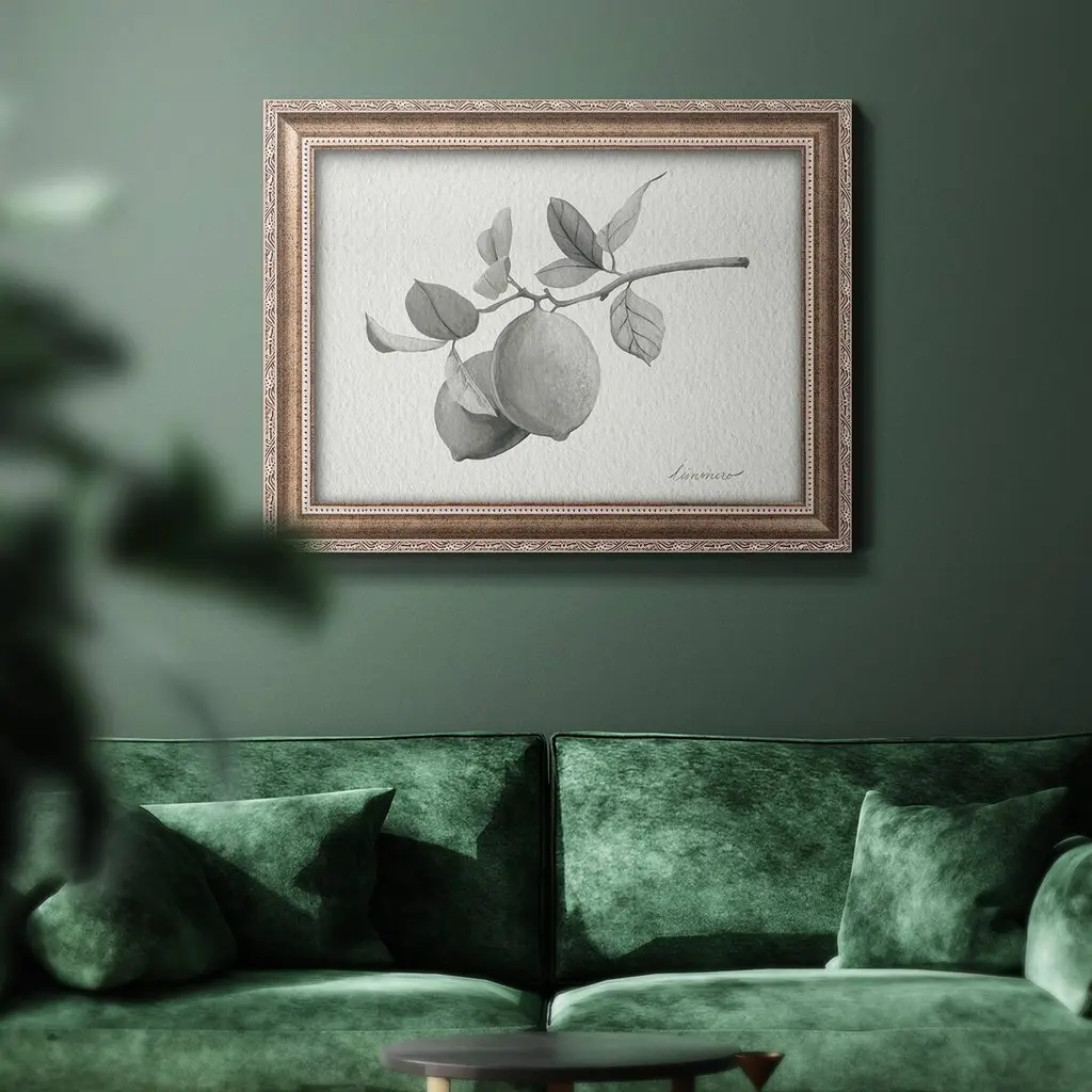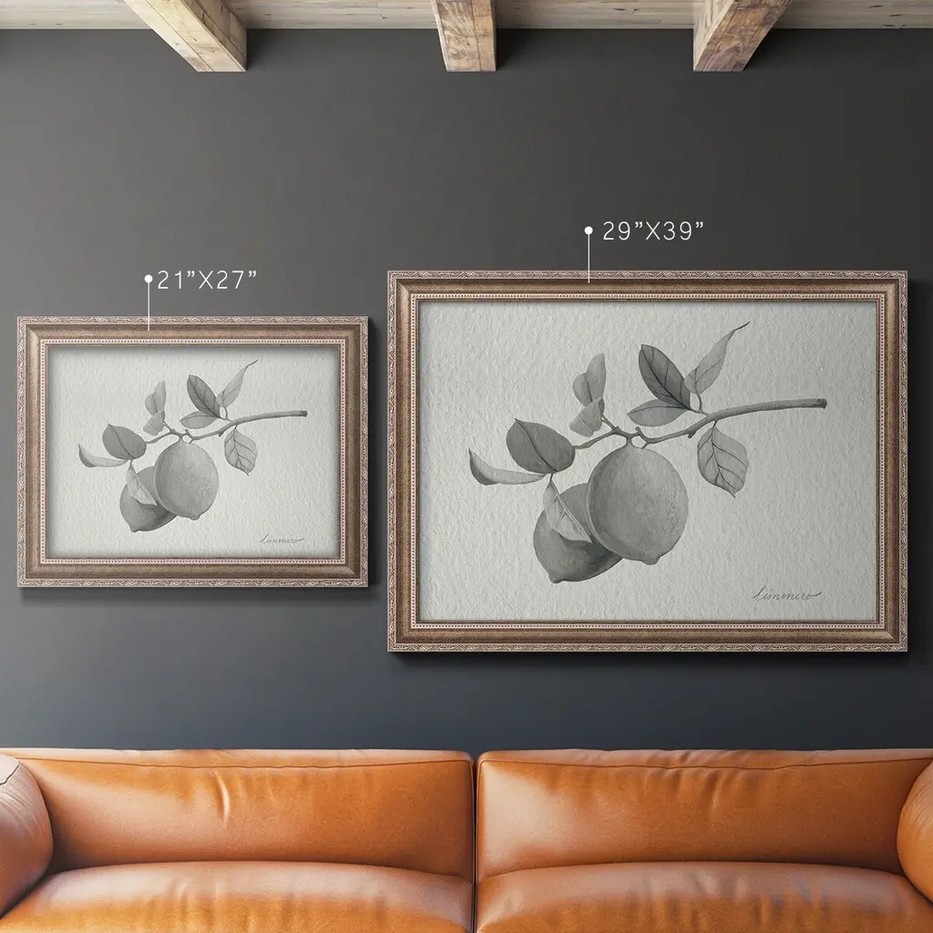 Limonero I Premium Framed Canvas- Ready to Hang A Premium Framed Canvas created to last. Framed in distressed wood and available in an array of sizes and colors Featuring a beveled a solid wood stretcher bar, each piece comes ready to hand 3 SIZES AVAILABLE 16''X20'' - Overall Size 18'X27'' - Overall Size 24''x36'' - Overall Size Each piece is made to order. Each piece comes with hanging hardware. Made in the USA Ready to Hang Giclee Paper Print Acrylic Glass Beveled Matt Board