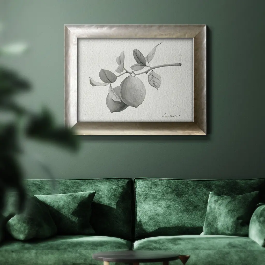 Limonero I Premium Framed Canvas- Ready to Hang A Premium Framed Canvas created to last. Framed in distressed wood and available in an array of sizes and colors Featuring a beveled a solid wood stretcher bar, each piece comes ready to hand 3 SIZES AVAILABLE 16''X20'' - Overall Size 18'X27'' - Overall Size 24''x36'' - Overall Size Each piece is made to order. Each piece comes with hanging hardware. Made in the USA Ready to Hang Giclee Paper Print Acrylic Glass Beveled Matt Board