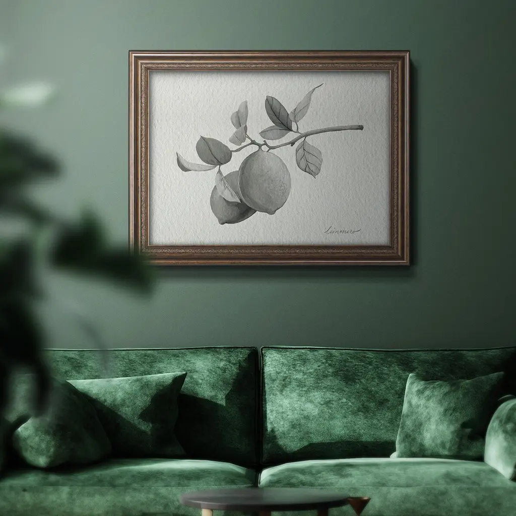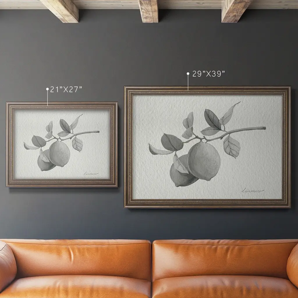 Limonero I Premium Framed Canvas- Ready to Hang A Premium Framed Canvas created to last. Framed in distressed wood and available in an array of sizes and colors Featuring a beveled a solid wood stretcher bar, each piece comes ready to hand 3 SIZES AVAILABLE 16''X20'' - Overall Size 18'X27'' - Overall Size 24''x36'' - Overall Size Each piece is made to order. Each piece comes with hanging hardware. Made in the USA Ready to Hang Giclee Paper Print Acrylic Glass Beveled Matt Board