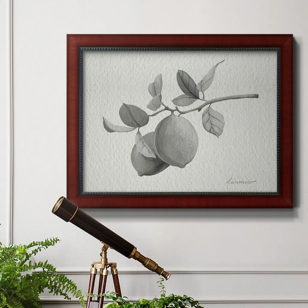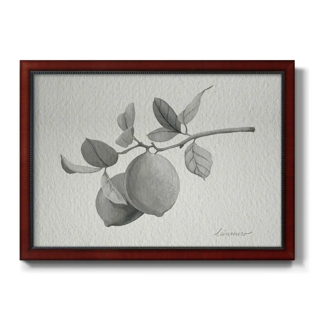 Limonero I Premium Framed Canvas- Ready to Hang A Premium Framed Canvas created to last. Framed in distressed wood and available in an array of sizes and colors Featuring a beveled a solid wood stretcher bar, each piece comes ready to hand 3 SIZES AVAILABLE 16''X20'' - Overall Size 18'X27'' - Overall Size 24''x36'' - Overall Size Each piece is made to order. Each piece comes with hanging hardware. Made in the USA Ready to Hang Giclee Paper Print Acrylic Glass Beveled Matt Board