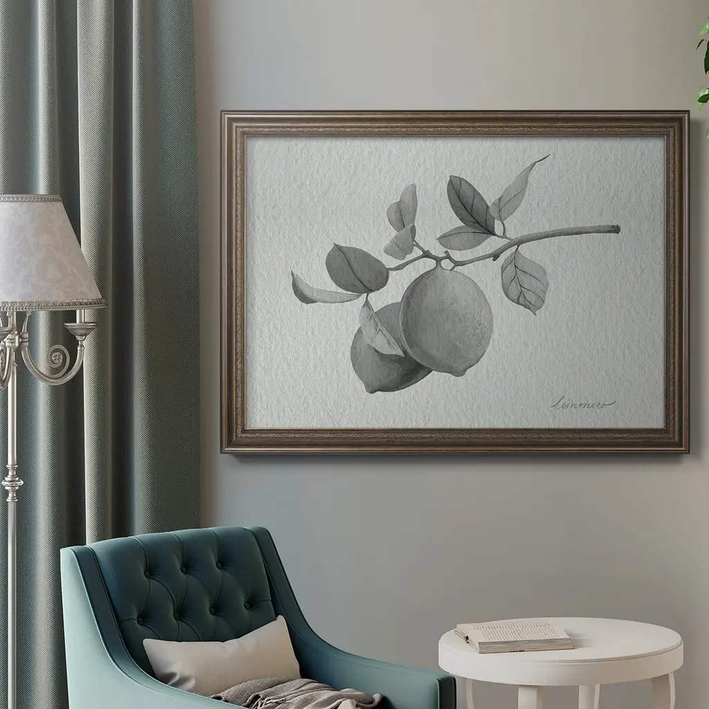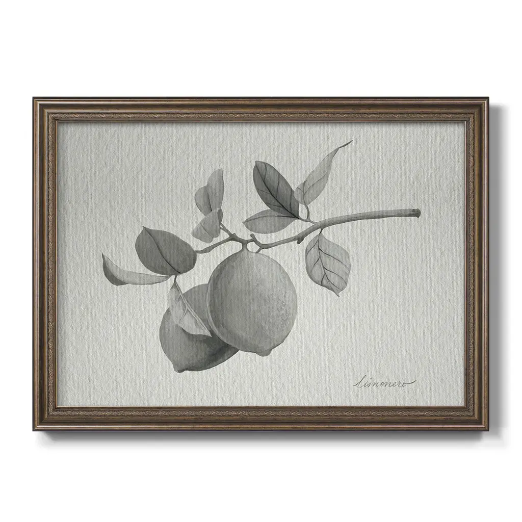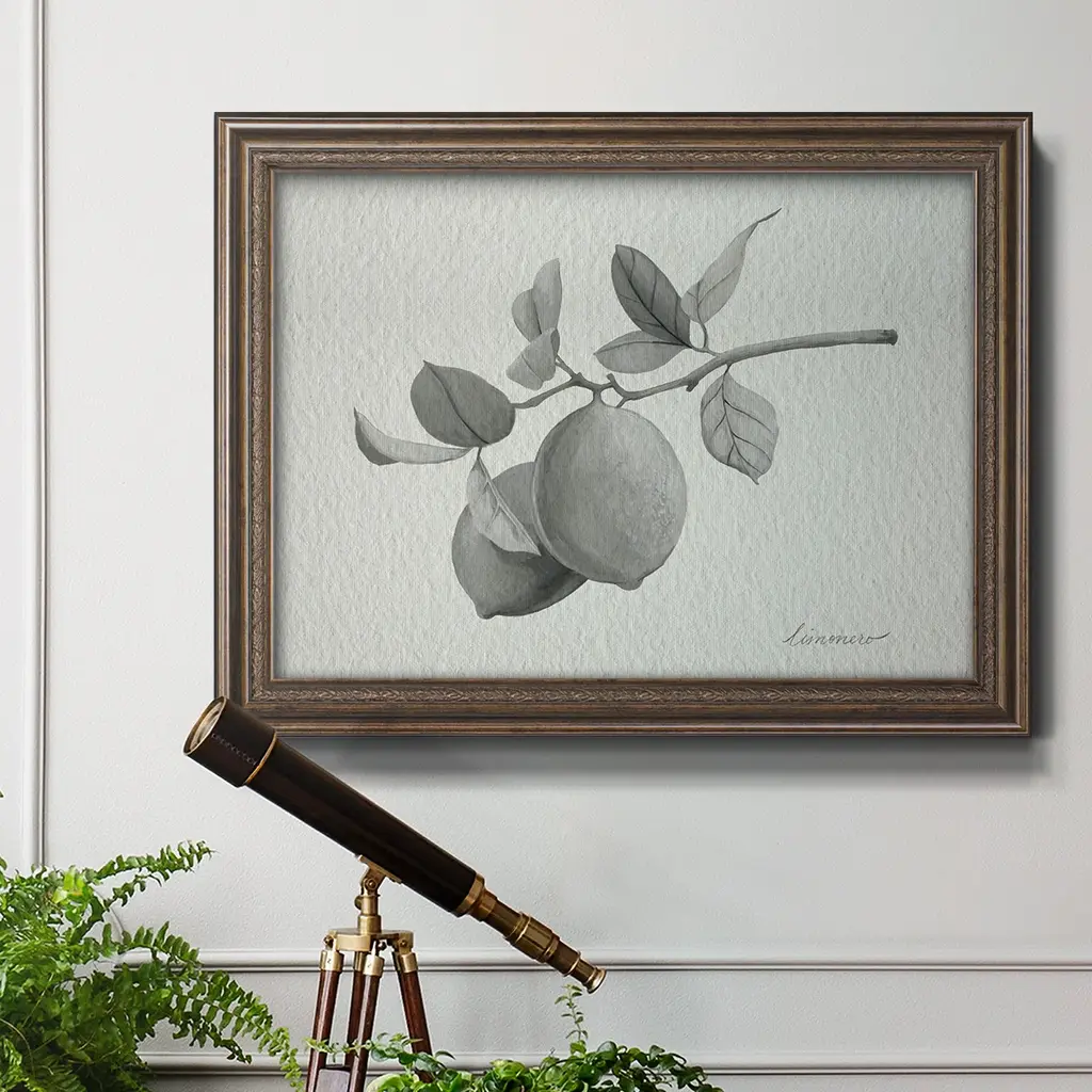 Limonero I Premium Framed Canvas- Ready to Hang A Premium Framed Canvas created to last. Framed in distressed wood and available in an array of sizes and colors Featuring a beveled a solid wood stretcher bar, each piece comes ready to hand 3 SIZES AVAILABLE 16''X20'' - Overall Size 18'X27'' - Overall Size 24''x36'' - Overall Size Each piece is made to order. Each piece comes with hanging hardware. Made in the USA Ready to Hang Giclee Paper Print Acrylic Glass Beveled Matt Board
