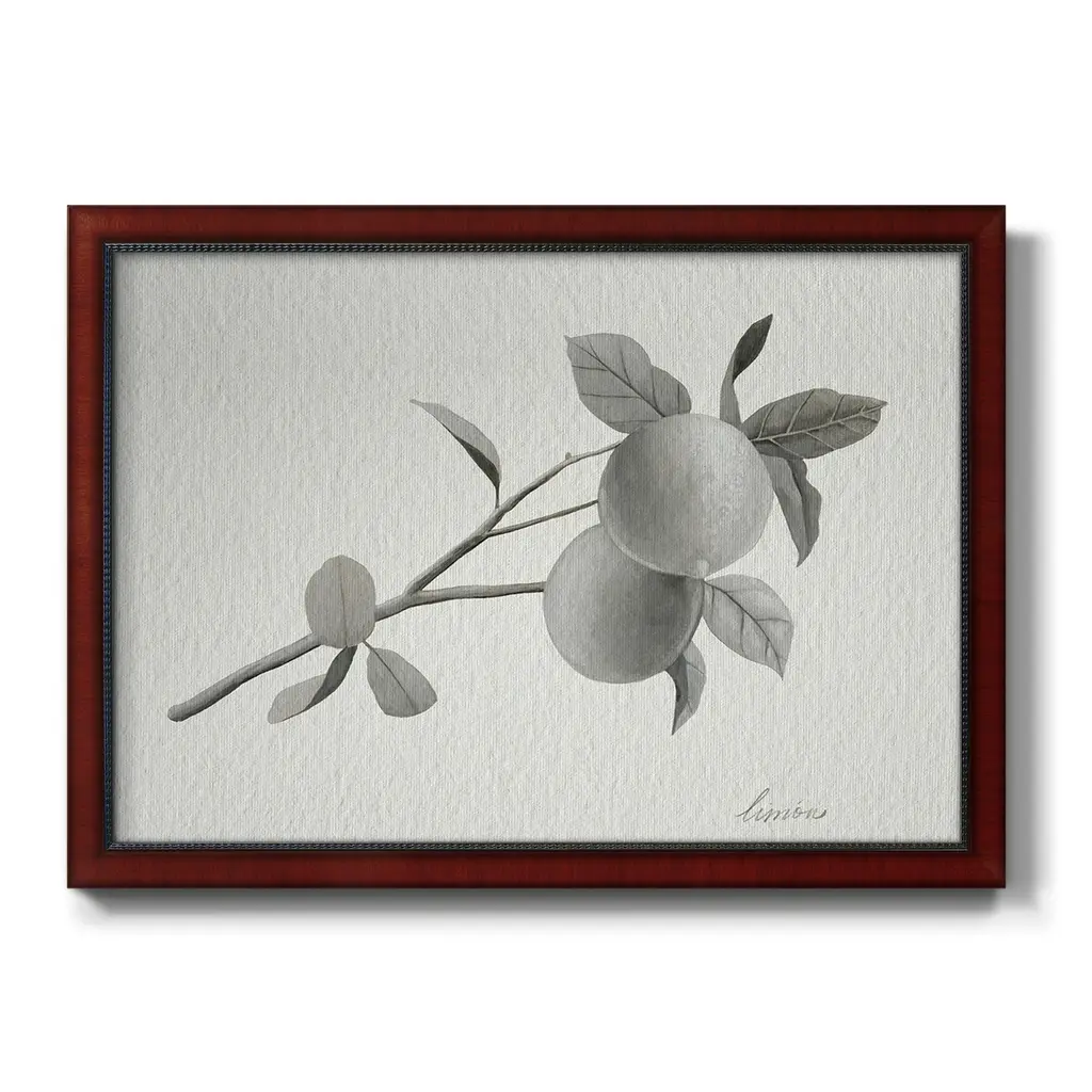 Limonero II Premium Framed Canvas- Ready to Hang A Premium Framed Canvas created to last. Framed in distressed wood and available in an array of sizes and colors Featuring a beveled a solid wood stretcher bar, each piece comes ready to hand 3 SIZES AVAILABLE 16''X20'' - Overall Size 18'X27'' - Overall Size 24''x36'' - Overall Size Each piece is made to order. Each piece comes with hanging hardware. Made in the USA Ready to Hang Giclee Paper Print Acrylic Glass Beveled Matt Board