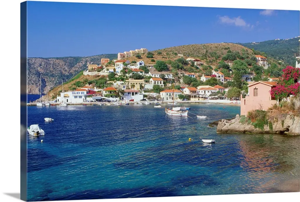 "Lindos Bay, Greece" Panorama Landscape Canvas Photo Print, 40"x30"