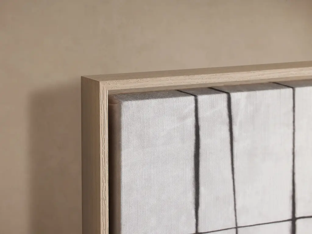 The abstract designs of our Linear Series giclee prints grab attention while creating a sense of dynamic movement in any space. Artist Dawn Sweitzer uses abstract patterns that interact with materials, colors, textures, and finishes to capture images and sensations from her many travels around the world. Complement your home décor aesthetic with the warm neutrals, engaging angular forms, and subtle shadows on display in this piece. Giclee print on linen canvas. Canvas is wrapped in a wood frame with a natural finish. Hangs vertically or horizontally from back-mounted D-rings. Artist: Dawn Sweitzer