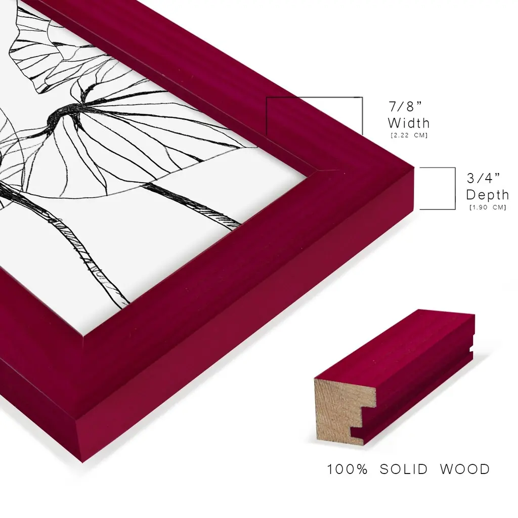 Linear Tropics I -EZ SWITCH Framed Print w/glass-Cherry Red A delightful, framed print. Featuring a solid wood frame with real wood glass. This premium print is giclee quality. In addition, every frame features a removable back and table top stand. This allows you to change your art in the future or to just stand the art on a table for a new look. We are sure you'll enjoy our new series of EZ SWITCH Framed Art. Solid Wood Frame Real Glass Removable / Replaceable Art Built in Tabletop Stand Sizes range from 4x6 up to 12x15 - buy just one or pair them up as sets as you see fit.