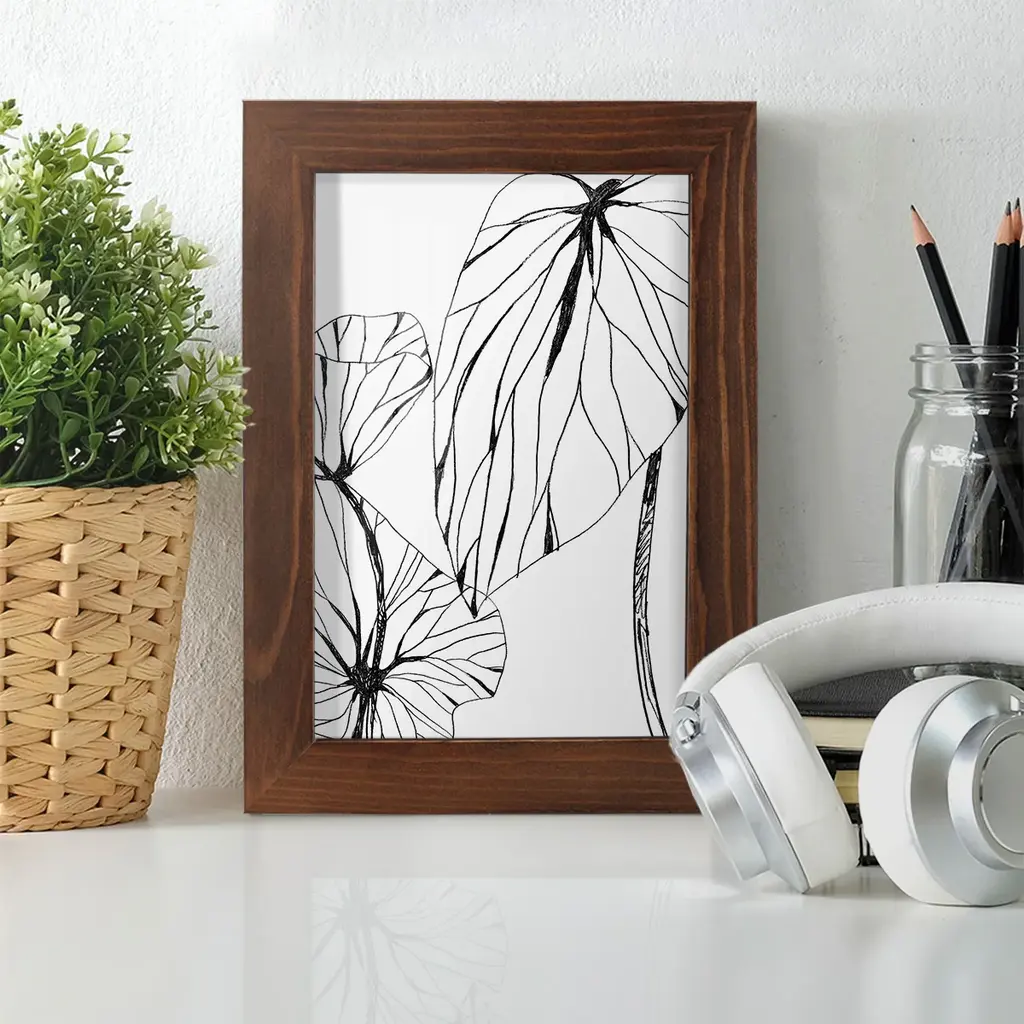 Linear Tropics with Gold II -EZ SWITCH Framed Print w/glass-Cherry Red A delightful, framed print. Featuring a solid wood frame with real wood glass. This premium print is giclee quality. In addition, every frame features a removable back and table top stand. This allows you to change your art in the future or to just stand the art on a table for a new look. We are sure you'll enjoy our new series of EZ SWITCH Framed Art. Solid Wood Frame Real Glass Removable / Replaceable Art Built in Tabletop Stand Sizes range from 4x6 up to 12x15 - buy just one or pair them up as sets as you see fit.
