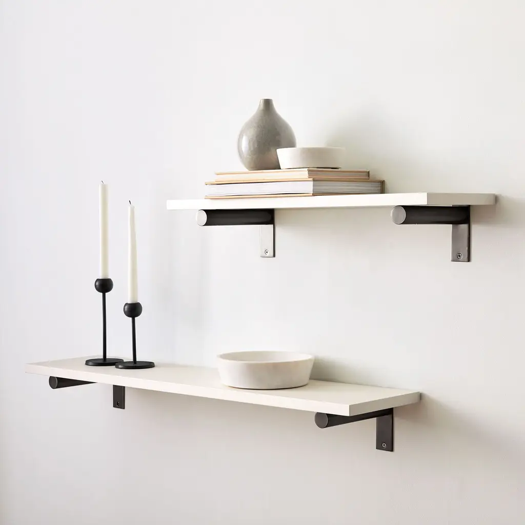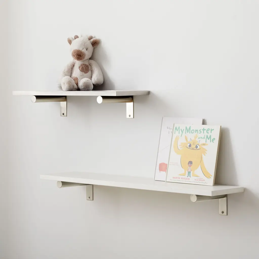 A modern showcase for books, artwork and more. Simple and clean-lined design. Can even hold toiletries in the bathroom. Quick and easy to install with included hardware.