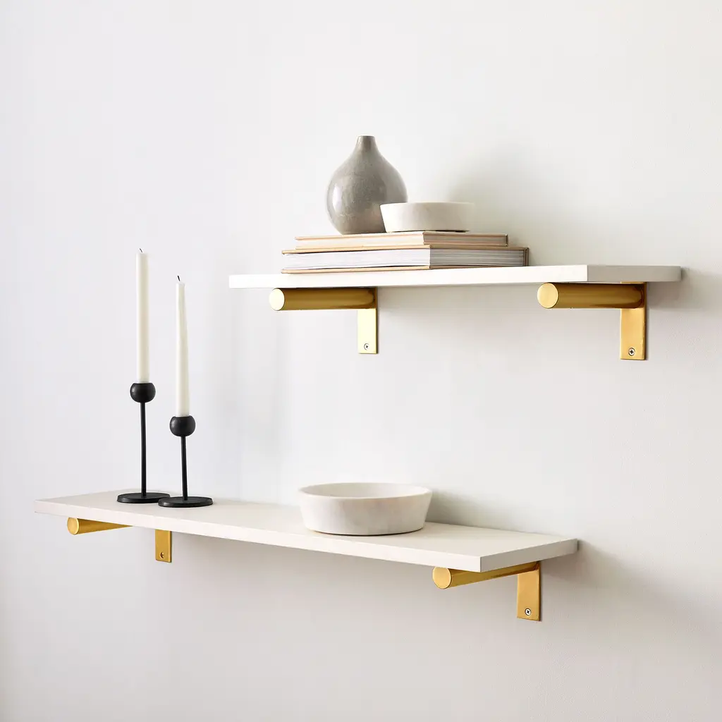 Linear White Lacquer Wall Shelves With Jordan Brackets