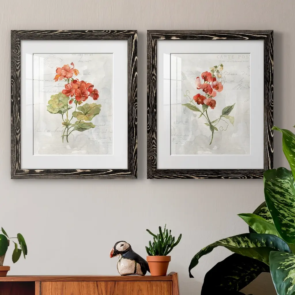 Linen Geranium-Premium Framed Print - Ready to Hang Framed in distressed wood and available in an array of sizes and colors Each piece is joined and assembled by hand and comes ready to hang 2 INCH BEVELED MATTE BOARD PLEXIGLASS COVERING READY TO HANG MADE IN THE USA SOLID WOOD FRAME MADE IN USA FADE RESISTANT GICLEE PRINTING on Canvas or Paper