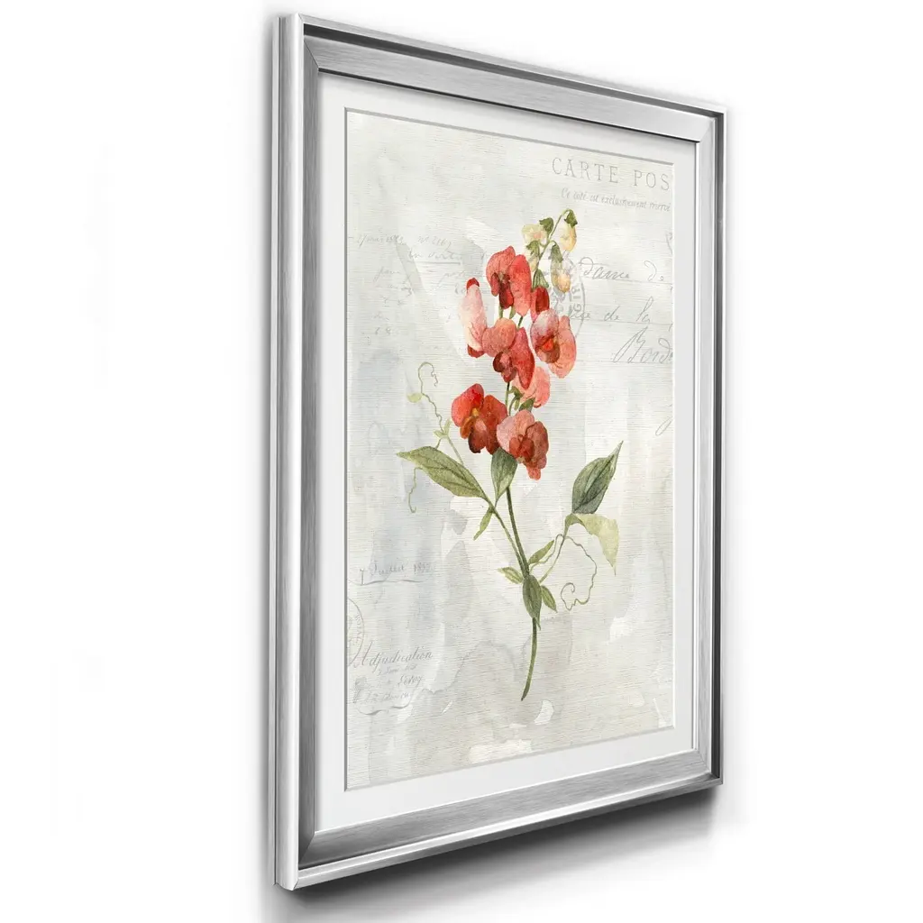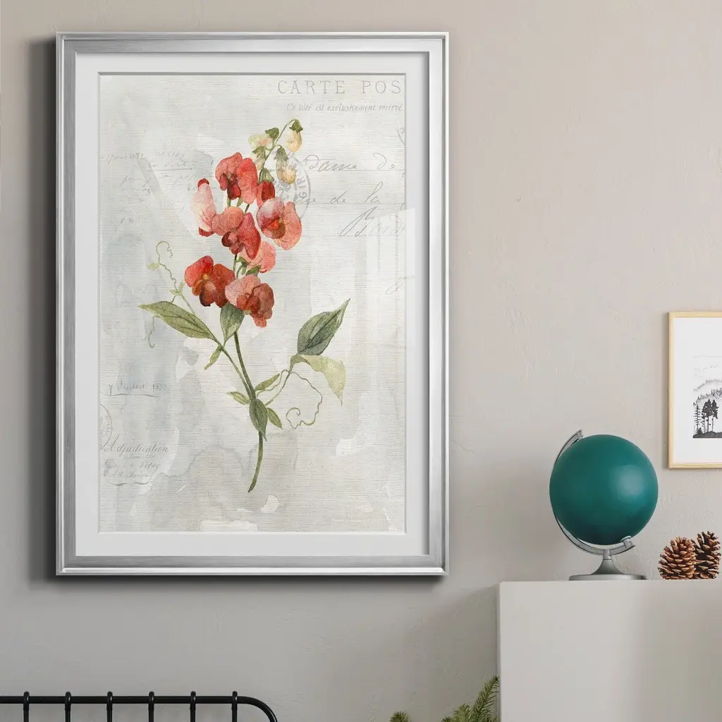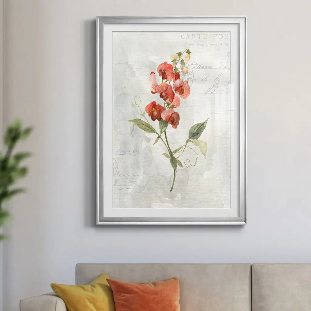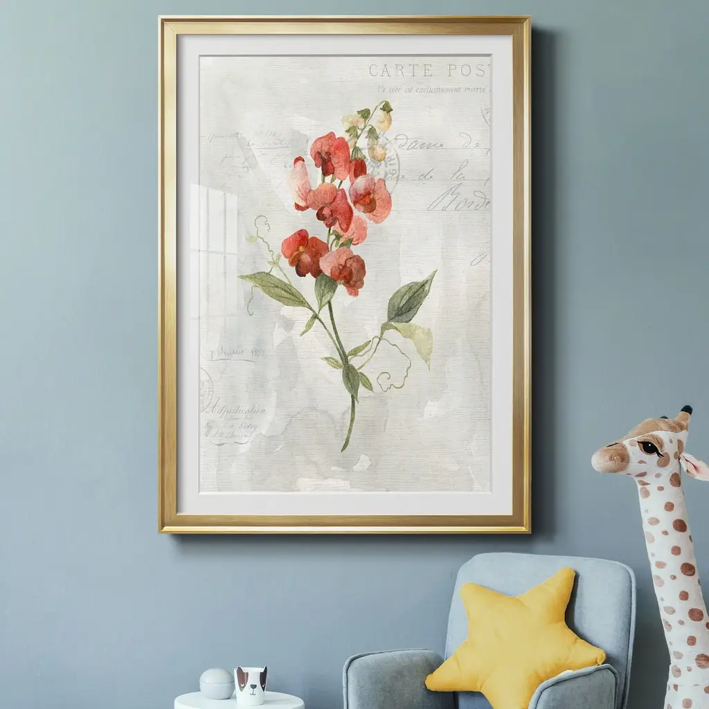 Linen Sweet Pea Premium Framed Print - Ready to Hang created to last. Framed in distressed wood and available in an array of sizes and colors Featuring a beveled a solid wood stretcher bar, each piece comes ready to hand 4 SIZES AVAILABLE 30.5''X42.5'' - Overall Size 26.5'X36.5'' - Overall Size 22''x30'' - Overall Size 18''x24'' - Overall Size Each piece is made to order. Each piece comes with hanging hardware. Made in the USA Ready to Hang Giclee Paper Print Acrylic Glass Beveled Matt Board