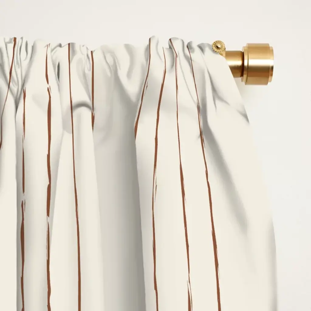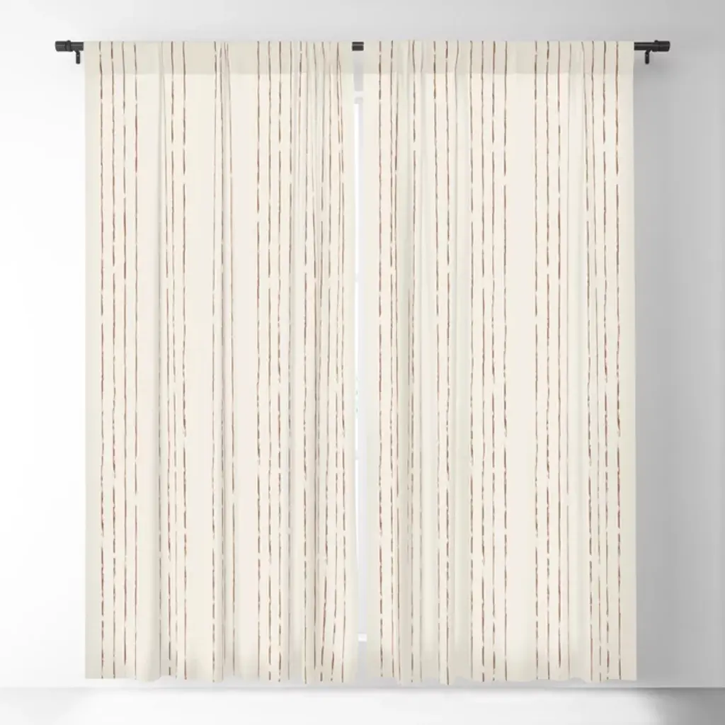 Blackout curtains are crafted with 100% woven polyester with a linen-like texture.Light-Filtering curtains are crafted with 100% mid-weight polyester.Sheer curtains are crafted with 100% lightweight polyester.Single sided print with white on reverse.Available in single or double panel options (double panels feature the same design on both).4" bottom pocket for easy hanging on any curtain rod (please note: artwork will appear upside down on non-patterned designs).Machine washable for easy care.Please note: Color variations may occur between on-site previews, your screen, and the printed fabric.Blackout, Light-Filtering, and Sheer Curtains are easy to care for:Machine wash cold.Use gentle cycle.Tumble dry low.SHIPPING: Items are made to order and typically ship within 3-4 business days. Click here for more information about delivery options.RETURNS: Return requests can be made within 30 days of your item(s) delivery. Click here for more information on returns.