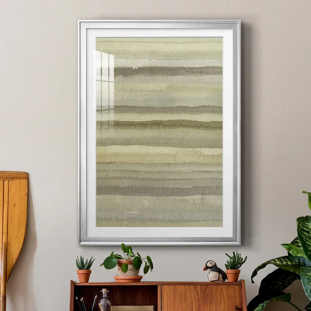 Lines in Neutral II Premium Framed Print - Ready to Hang A Premium Framed Print created to last. Framed in distressed wood and available in an array of sizes and colors Featuring a beveled a solid wood stretcher bar, each piece comes ready to hand 4 SIZES AVAILABLE 30.5''X42.5'' - Overall Size 26.5'X36.5'' - Overall Size 22.5''x30.5'' - Overall Size 18.5''x24.5'' - Overall Size Each piece is made to order. Each piece comes with hanging hardware. Made in the USA Ready to Hang Giclee Paper Print Acrylic Glass Beveled Matt Board